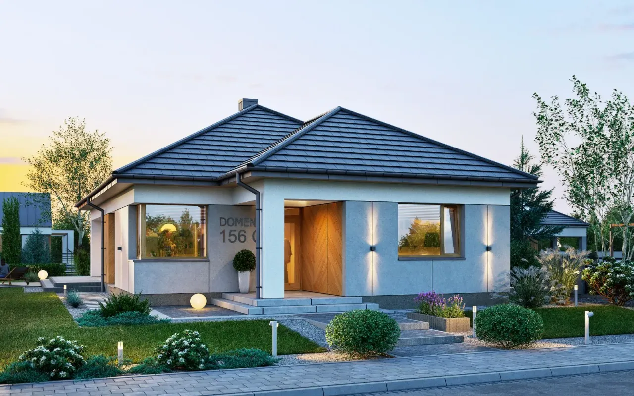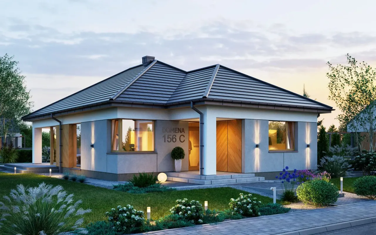 Wypełnij formularz i otrzymaj rysunki w pdf z dokładnymi wymiarami budynku i pomieszczeń (długość, szerokość, wysokość) dla projektu Domena 156 C
