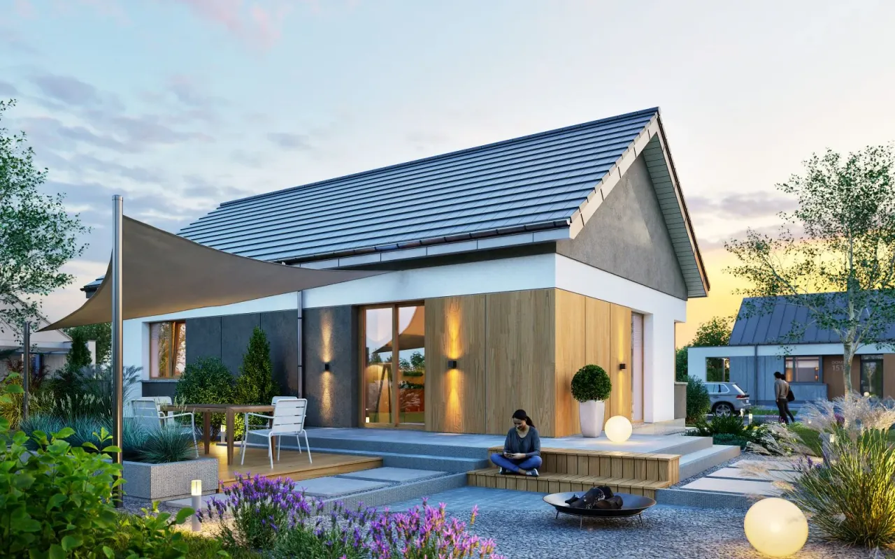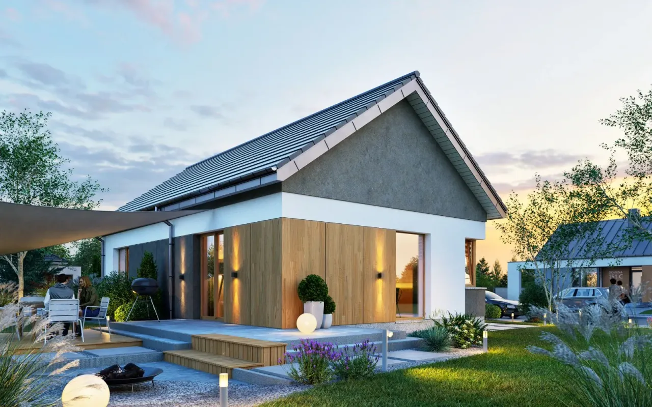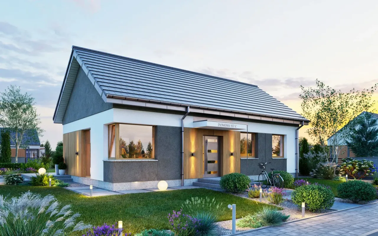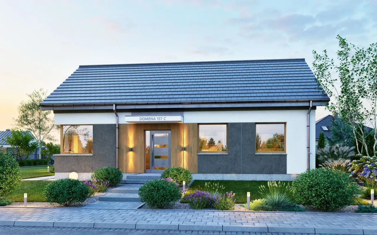 Projekt Domena 157 C zachwyca nowoczesnym stylem. Bryła wygląda elegancko. Dach nadaje mu charakteru. Elewacja prezentuje się schludnie. Duże okna wpuszczają mnóstwo światła. Wejście podkreśla wyjątkowy design. Układ pomieszczeń wydaje się funkcjonalny. Przestronne wnętrza robią wrażenie. Każdy detal wygląda starannie. Przeglądam ten projekt i rozważam jego zakup oraz budowę tego domu.