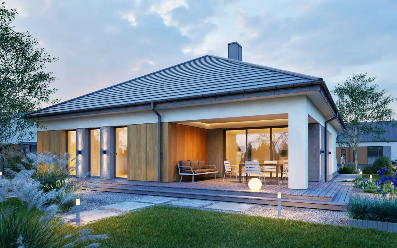 - Pokrycie dachu: blachodachówka lub dachówka cementowa.