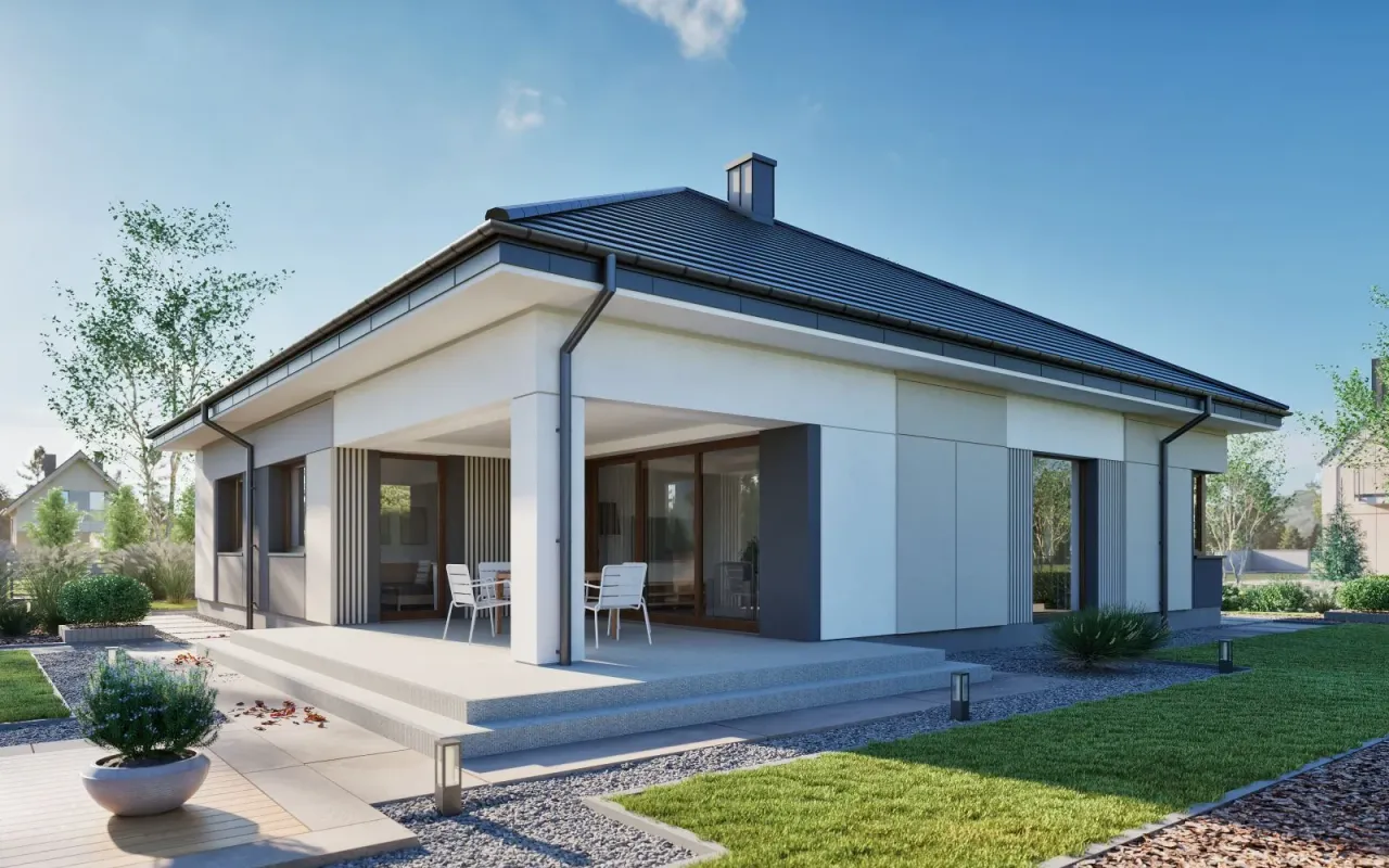 - Pokrycie dachu: blachodachówka lub dachówka cementowa.