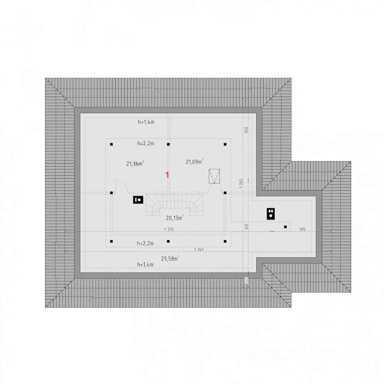 - rzut dachu w skali 1:100