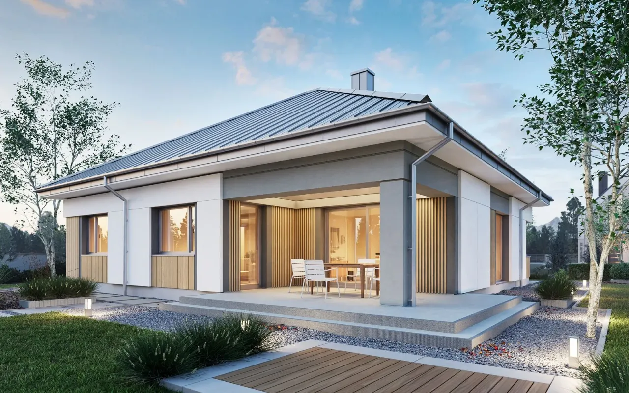 - Pokrycie dachu: blachodachówka lub dachówka.