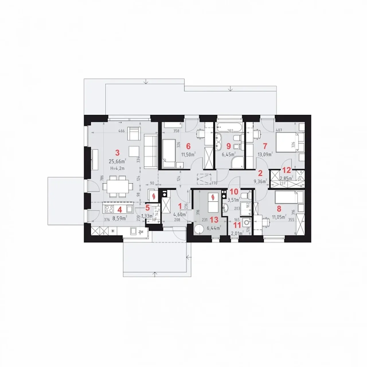 Wypełnij formularz i otrzymaj na podany adres e-mail rysunki w pdf z dokładnymi wymiarami budynku i pomieszczeń (długość, szerokość, wysokość) dla projektu Domena 164 C
