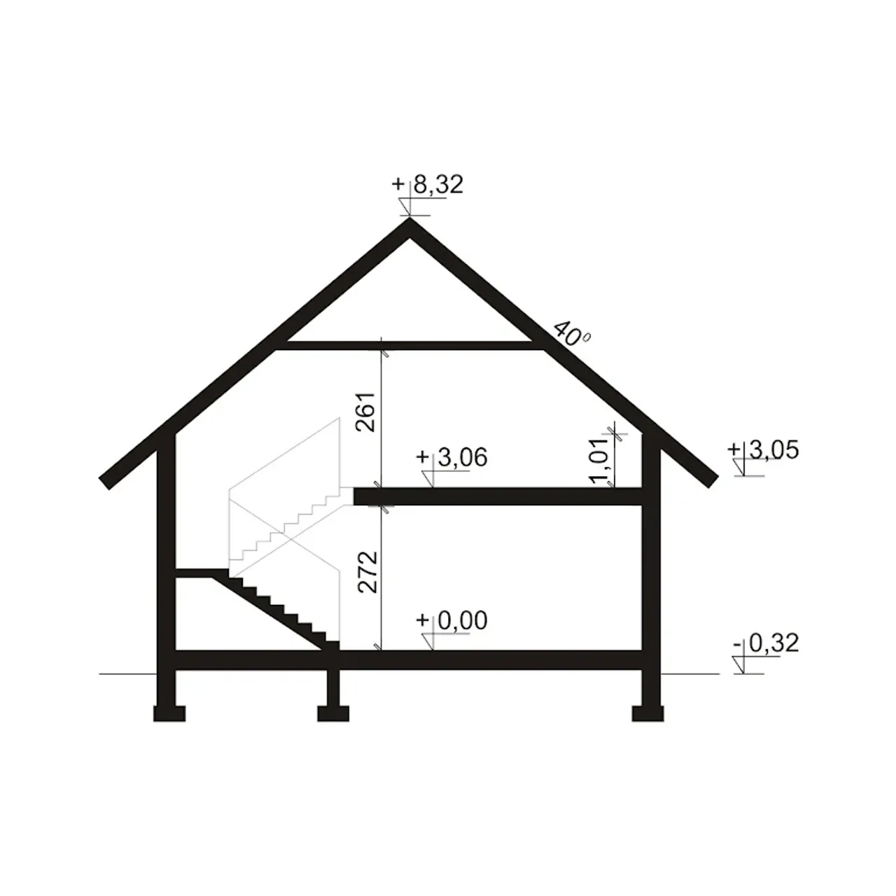 - przekroje pionowe ze szczególnym uwzględnieniem miejsc charakterystycznych budynku wykonane w skali 1:50