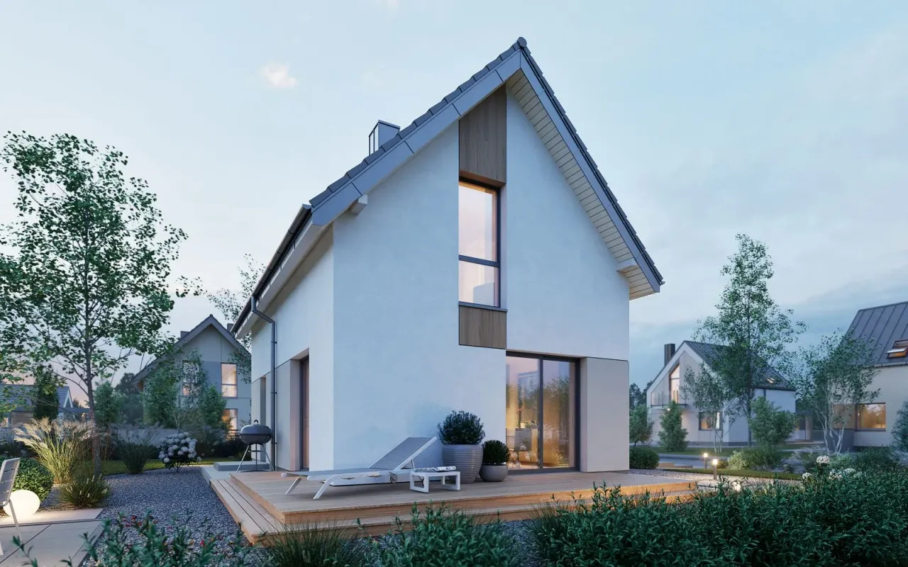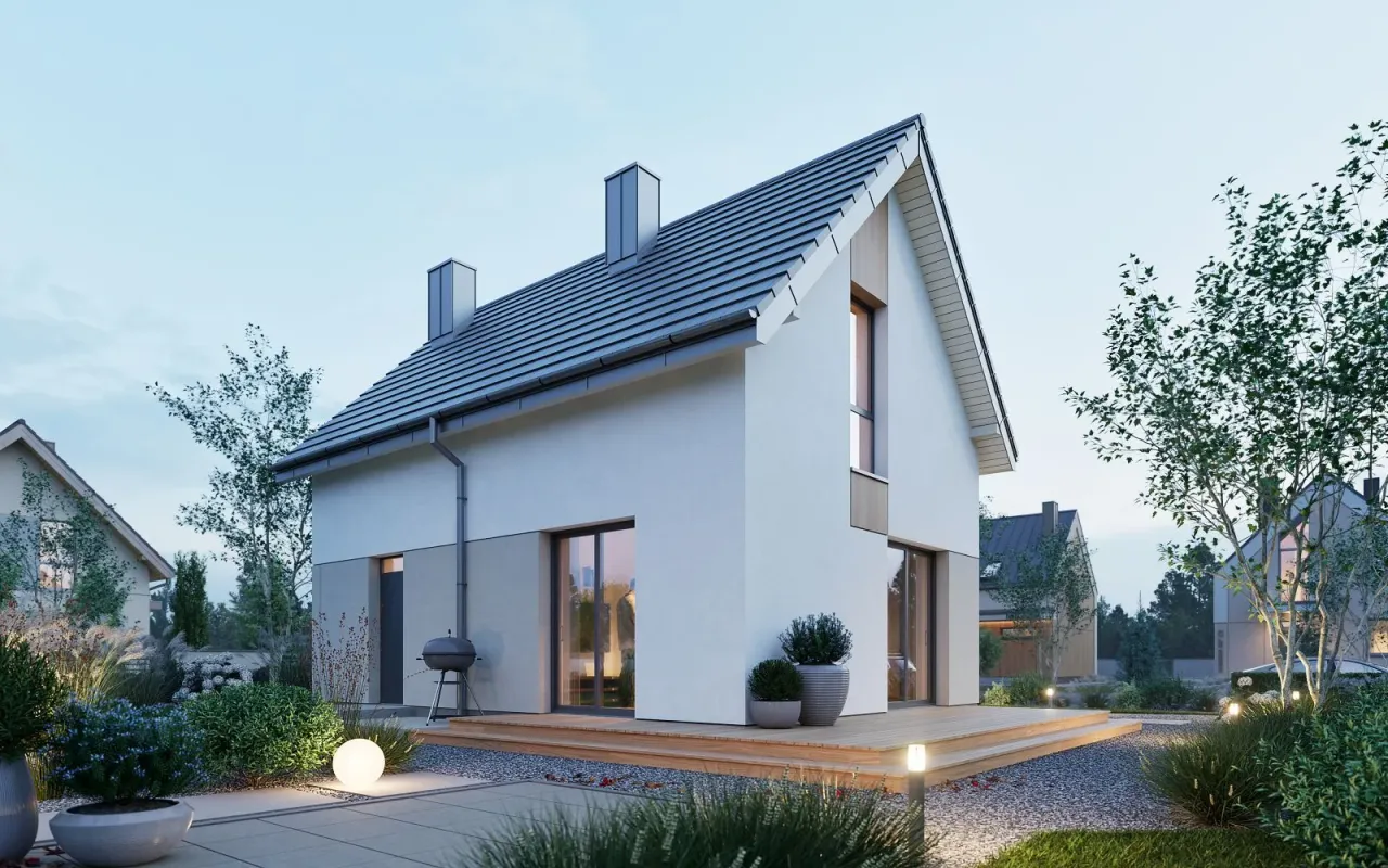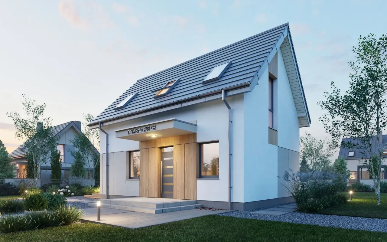 Projekt domu Domena 208 C2 urzeka nowoczesnym stylem. Jego fasada przyciąga uwagę swoją prostotą i elegancją. Wnętrza są przestronne i dobrze oświetlone, co stwarza wrażenie spokoju i przestrzeni. Każdy element projektu jest starannie zaplanowany i funkcjonalny. Rozkład pomieszczeń jest bardzo intrygujący, a dach nadaje budynkowi swoisty charakter. Podoba mi się, jak nowoczesny design łączy się tutaj z tradycyjną formą. Życie w takim domu wydaje się wyjątkowo komfortowe. Jestem pod wielkim wrażeniem zastosowanych praktycznych rozwiązań architektonicznych i poważnie rozważam zakup tego projektu, by wybudować taki dom.