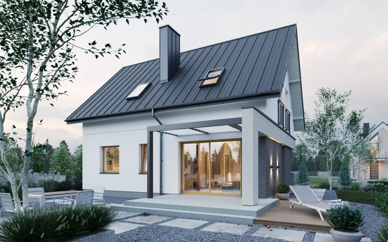 - Pokrycie dachu: blacha na rąbek stojący.