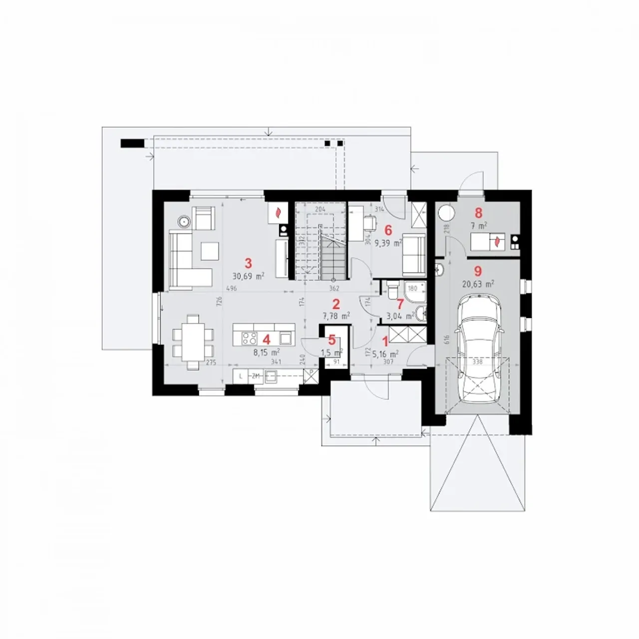 | Powierzchnia zabudowy 129.52 m² |