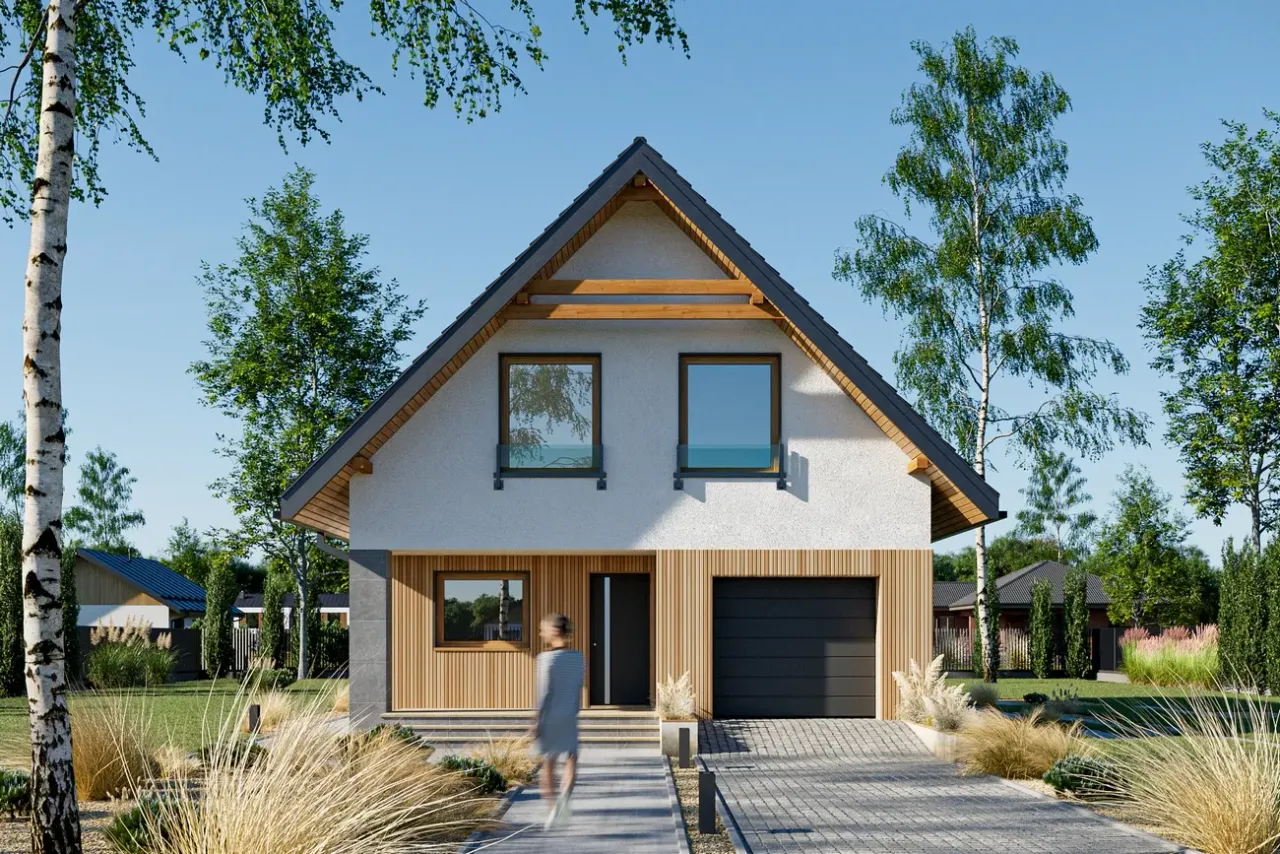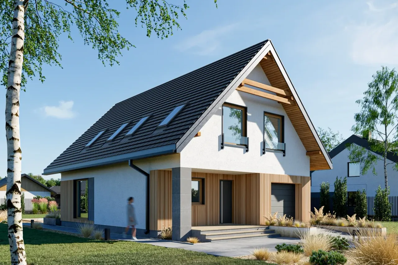 - elewacje - pokazują dokładny wygląd domu od frontu, z tyłu i z boków