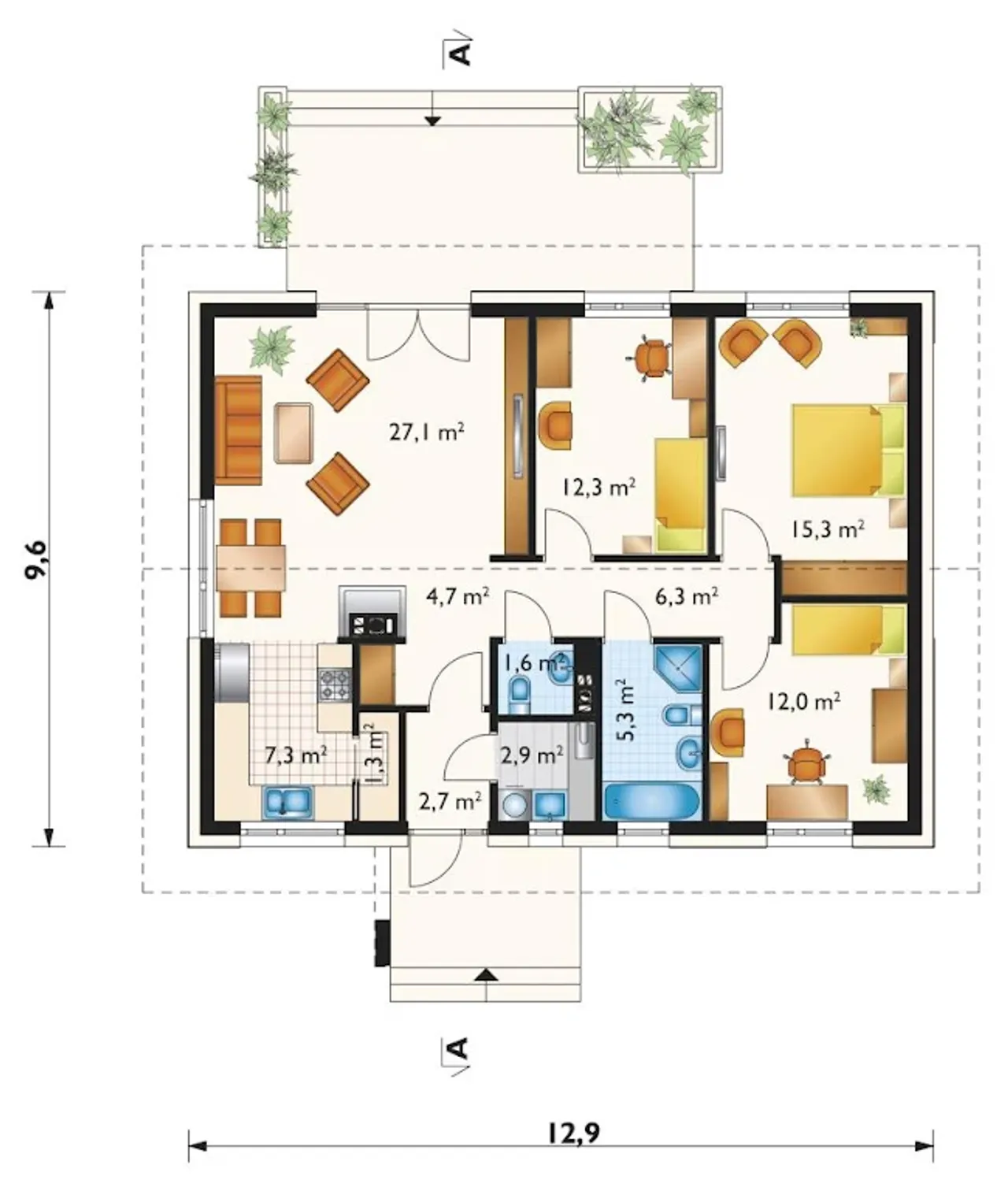 - elewacje - pokazują dokładny wygląd domu od frontu, z tyłu i z boków