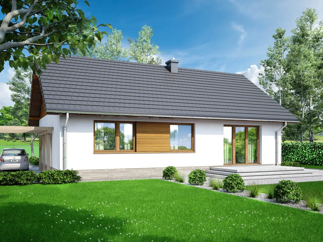 Szukasz eleganckiego, nowoczesnego domu parterowego dla czteroosobowej rodziny? Projekt domu Doppio to doskonała propozycja, jeśli cenisz funkcjonalność, wygodę i trwałe rozwiązania konstrukcyjne. Starannie zaplanowane rozmieszczenie pokoi tworzy idealne warunki do życia przez cały rok.