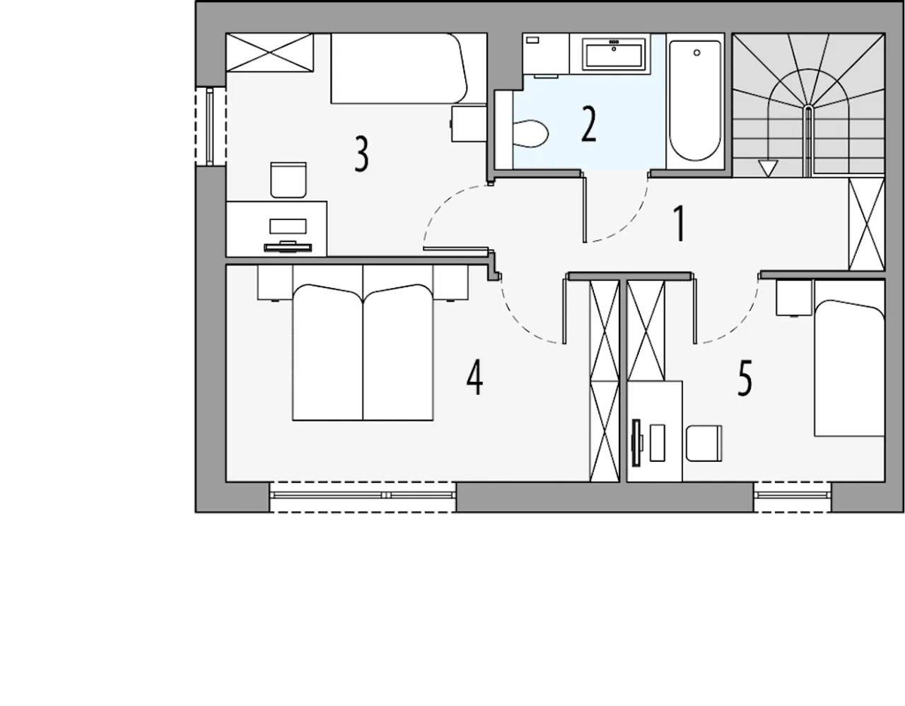 - Piętrowy układ: Wyraźne oddzielenie strefy dziennej od nocnej porządkuje codzienne funkcjonowanie domowników.