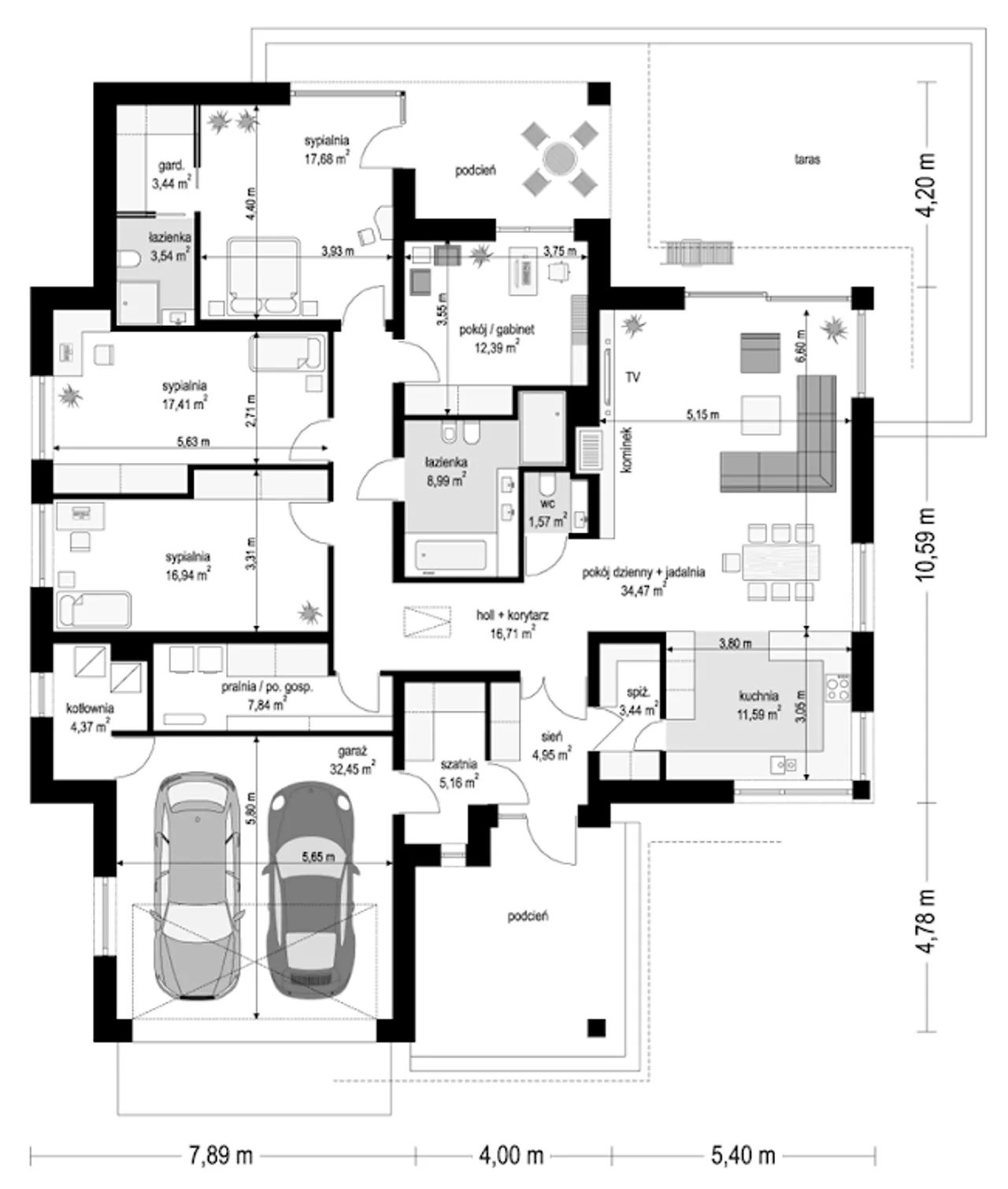 4. Pokój dzienny + jadalnia | 34,47 m² |