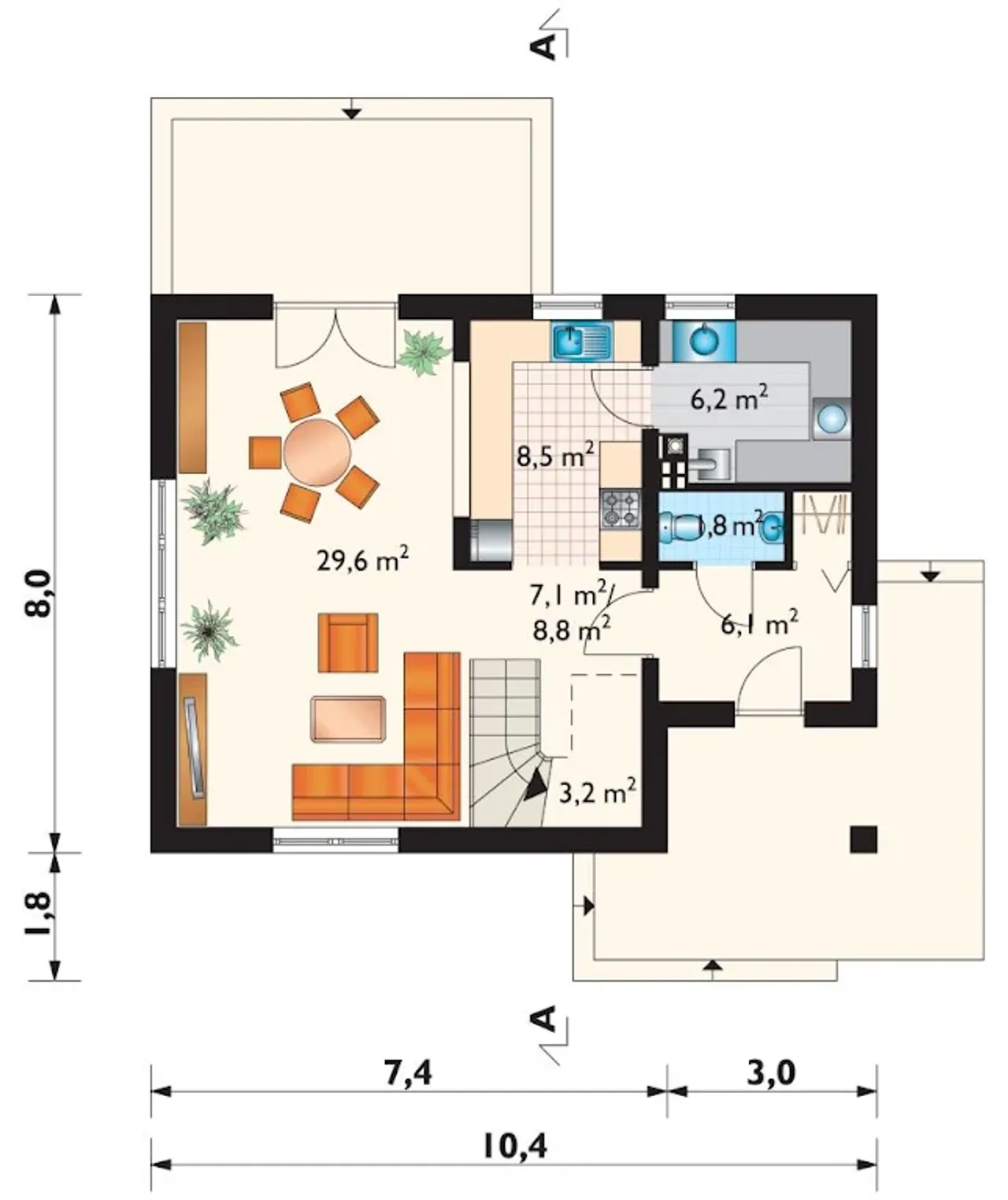 - elewacje - pokazują dokładny wygląd domu od frontu, z tyłu i z boków
