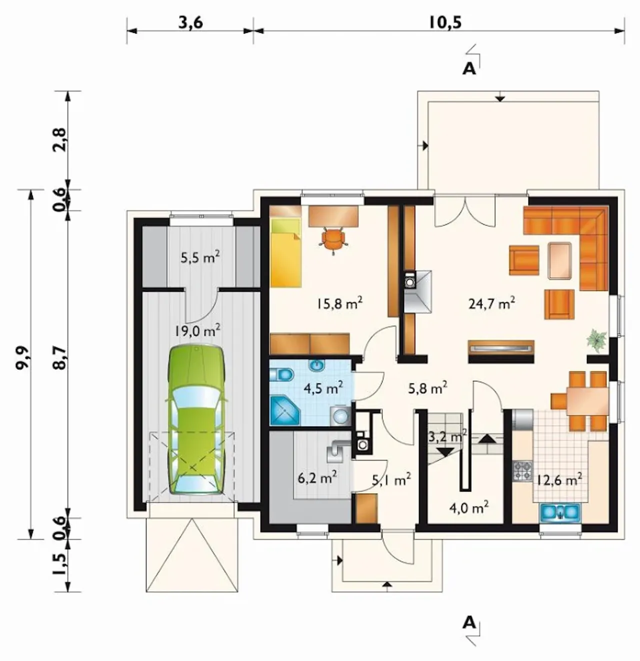 1. Garaż | 19,00 m² |