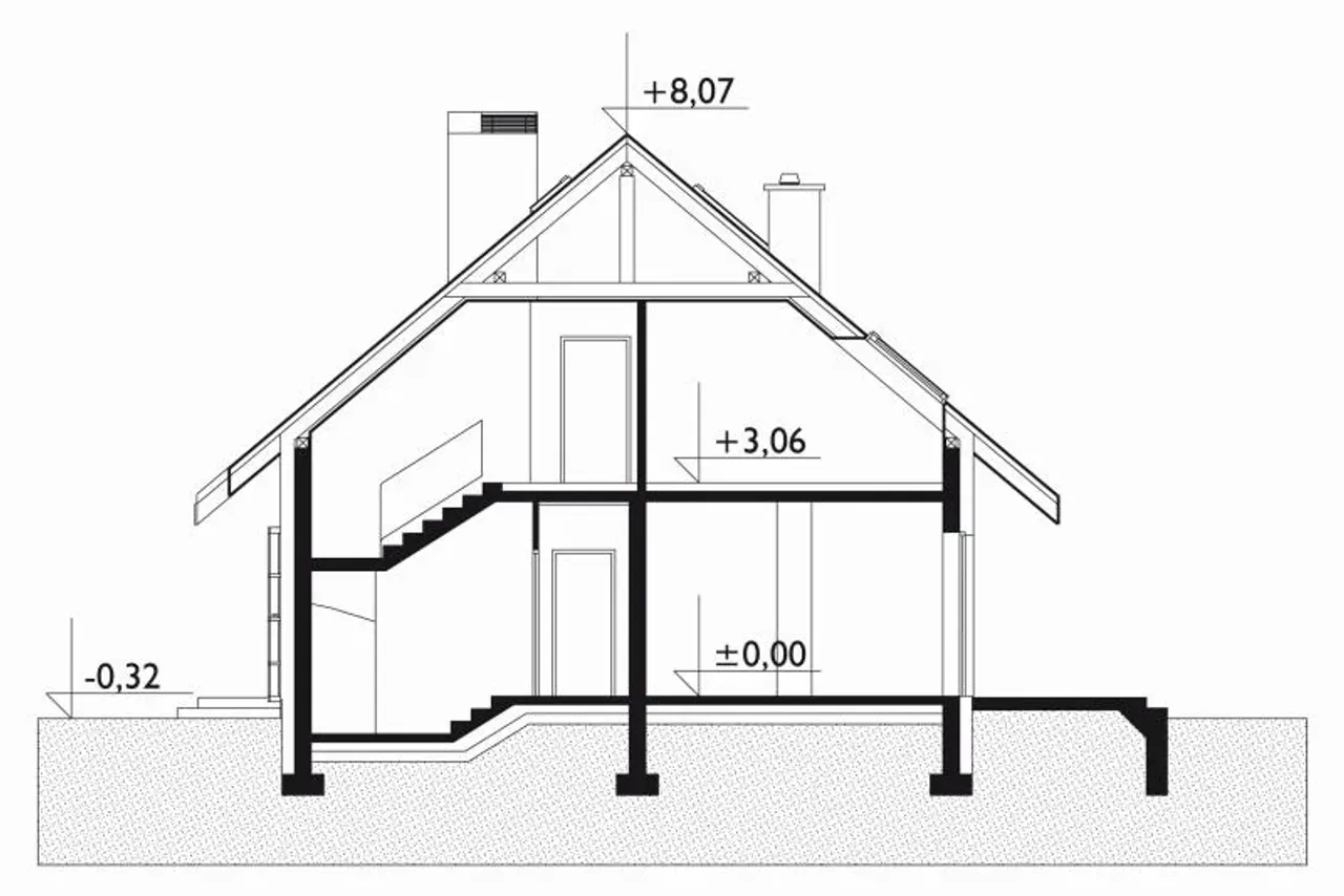- przekroje - pokazują wszystkie elementy budynku po przecięciu go wzdłuż lub w poprzek od dachu do fundamentów tj. warstwy podłogi, stropów i dachu