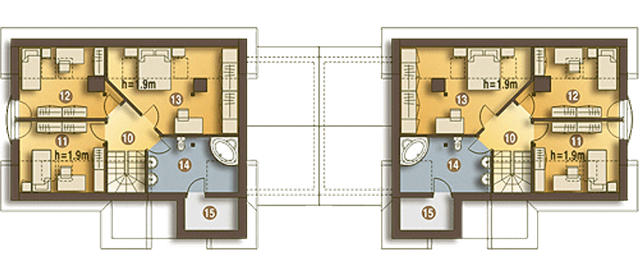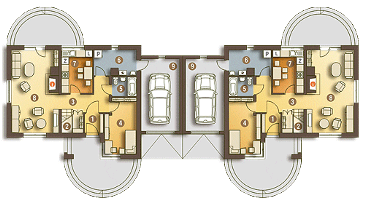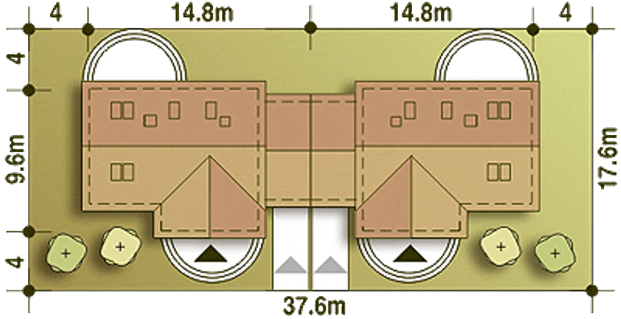 Wypełnij formularz i otrzymaj rysunki w pdf z dokładnymi wymiarami budynku i pomieszczeń (długość, szerokość, wysokość) dla projektu Drozd z garażem 1-st. bliźniak A-BL
