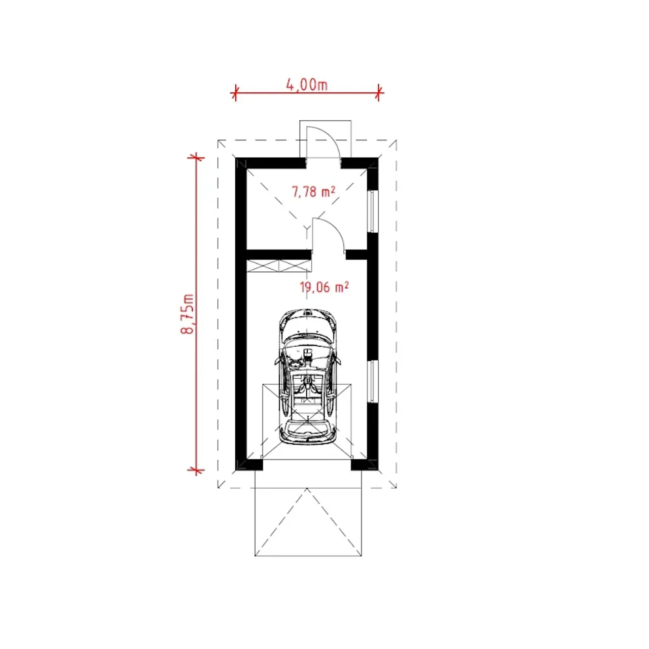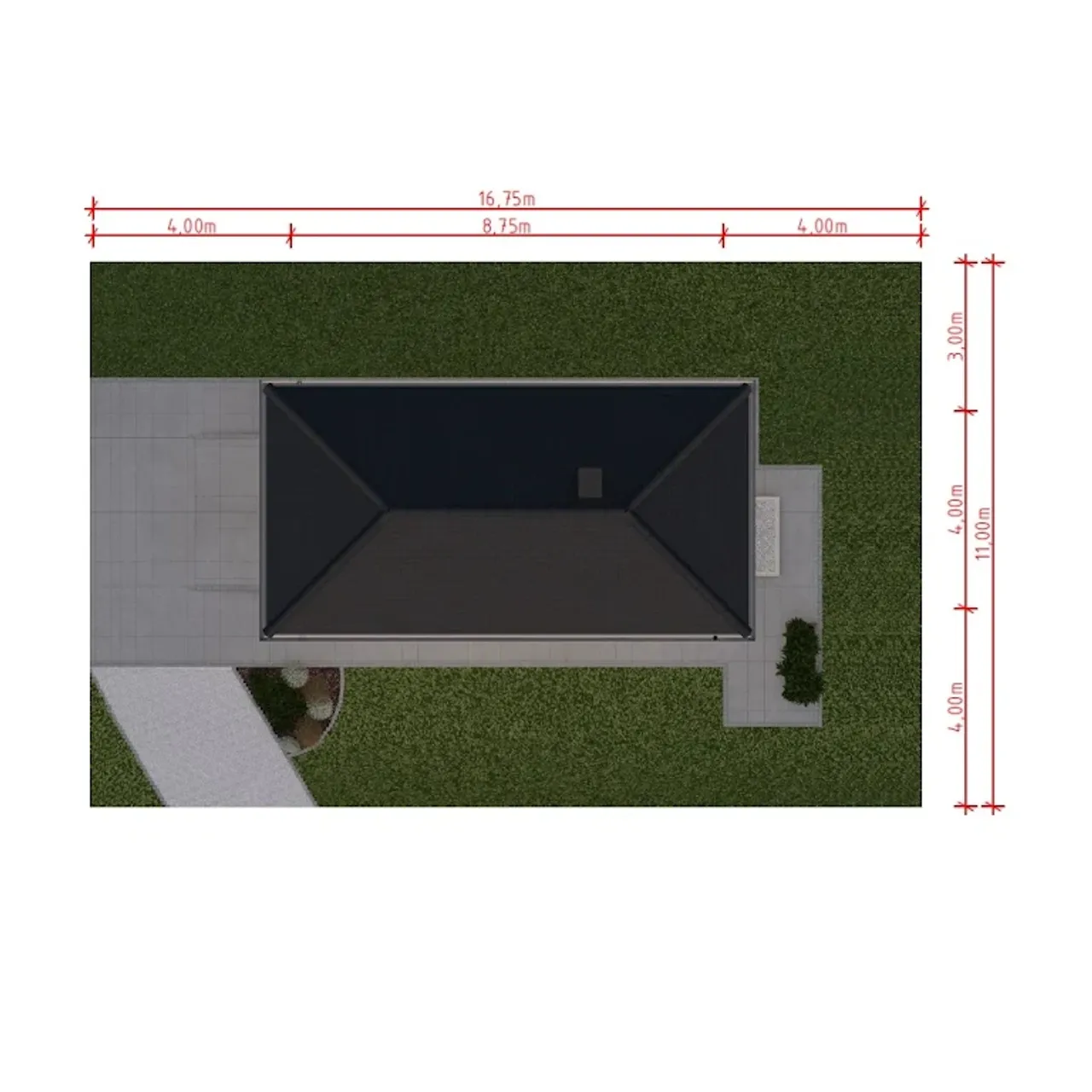 | Długość budynku 8.75 m |