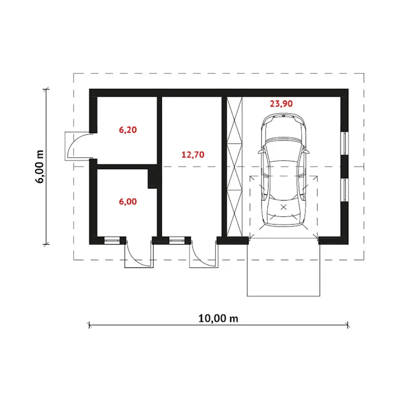 | Długość budynku 6 m |