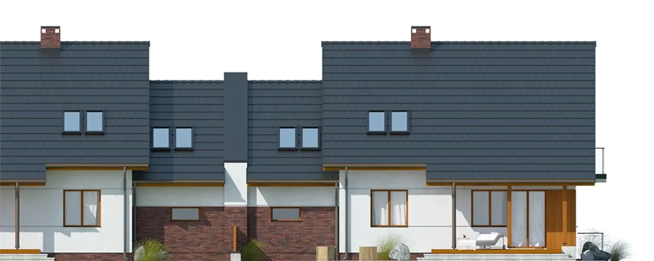 Projekt domu Duplicatus I PG1 to nowoczesny dom bliźniaczy z poddaszem użytkowym i funkcjonalnym podpiwniczeniem, stworzony z myślą o rodzinach ceniących wygodę, niezależność oraz solidne rozwiązania. Ten przemyślany projekt łączy praktyczne udogodnienia, nowoczesną stylistykę i trwałe materiały, tworząc przestrzeń idealną do życia.