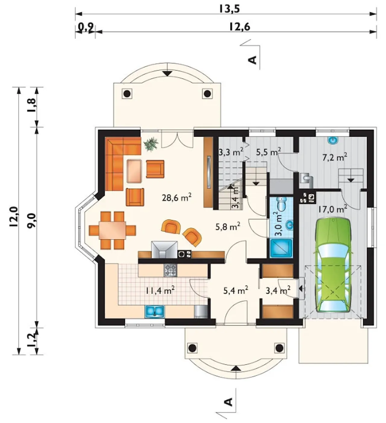 - elewacje - pokazują dokładny wygląd domu od frontu, z tyłu i z boków