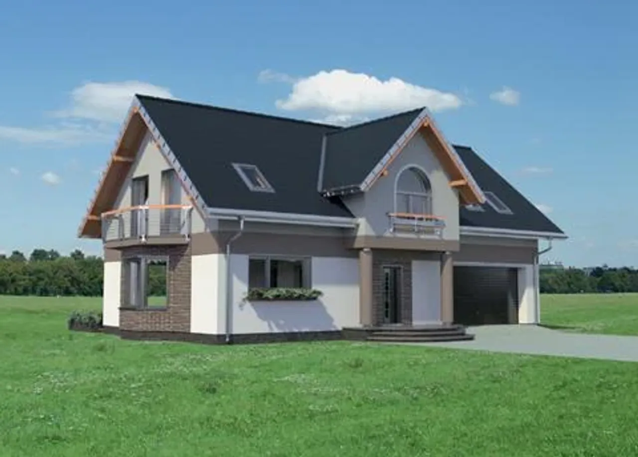 - elewacje - pokazują dokładny wygląd domu od frontu, z tyłu i z boków