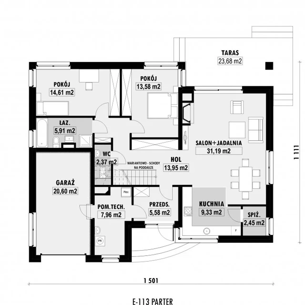 Wypełnij formularz i otrzymaj rysunki w pdf z dokładnymi wymiarami budynku i pomieszczeń (długość, szerokość, wysokość) dla projektu E-113