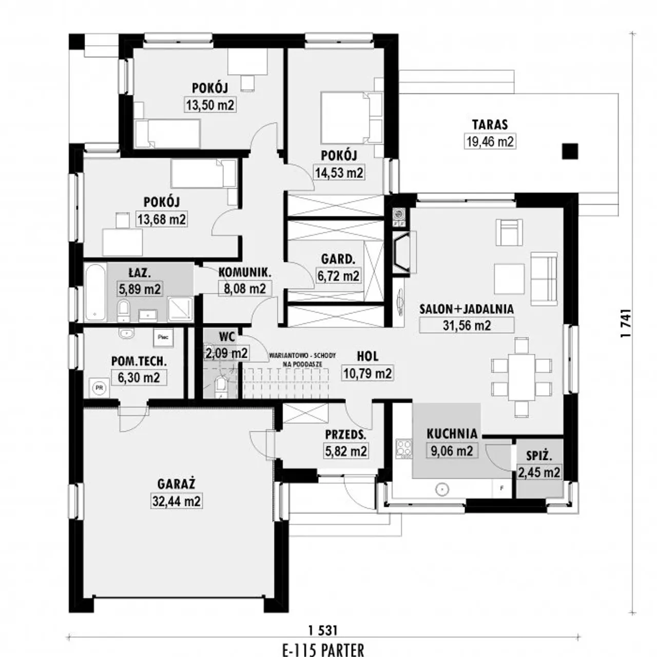 Wypełnij formularz i otrzymaj rysunki w pdf z dokładnymi wymiarami budynku i pomieszczeń (długość, szerokość, wysokość) dla projektu E-115