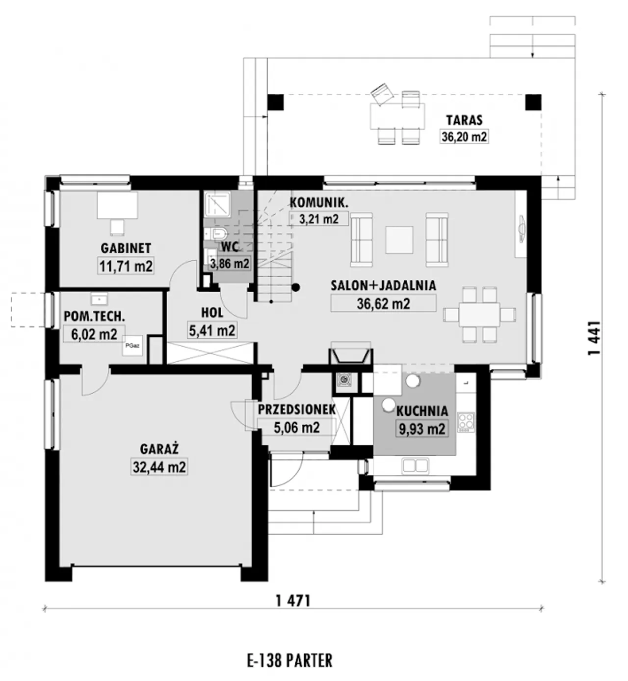 Wypełnij formularz i otrzymaj rysunki w pdf z dokładnymi wymiarami budynku i pomieszczeń (długość, szerokość, wysokość) dla projektu E-138