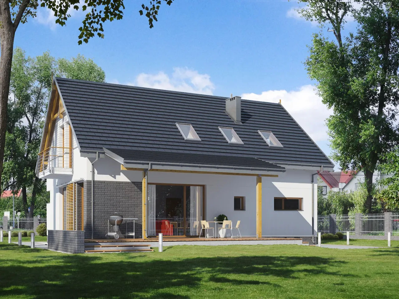Kupując projekt w technologii murowanej powinieneś budować dom murowany. Zupełna zmiana technologii na szkieletową wymaga przeprojektowania całego budynku ( zmieniają się obciążenia, fundamenty, konstrukcja dachu). Wydamy zgodę na takie przeprojektowanie jednak wiążę się to z dużymi kosztami. Istnieją firmy wykonawcze, które podejmują się zmiany technologii budowy bezpłatnie przy skorzystaniu z ich usług wykonawczych. Zdarza się, że pracownia architektoniczna przygotowuje warianty konkretnego projektu przewidując także inne technologie. Prosimy o sprawdzenie czy istnieje poszukiwana wersja projektu, w zakładce - warianty projektu.