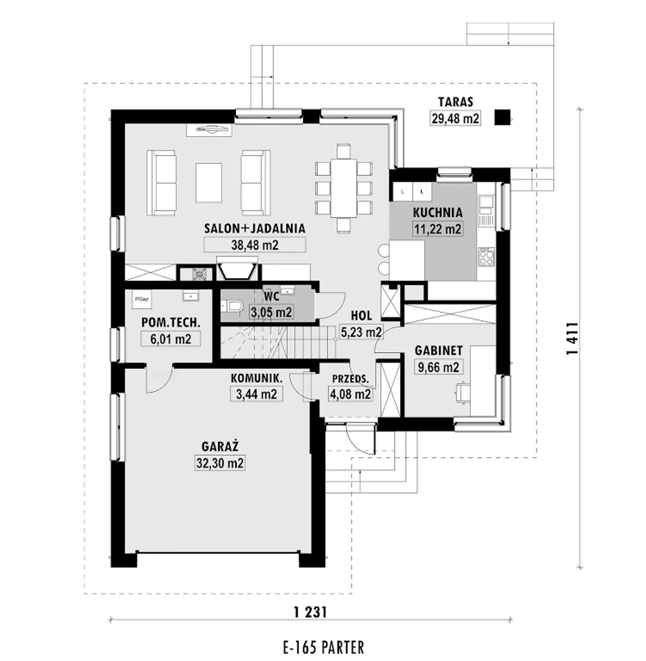 Wypełnij formularz i otrzymaj rysunki w pdf z dokładnymi wymiarami budynku i pomieszczeń (długość, szerokość, wysokość) dla projektu E-165