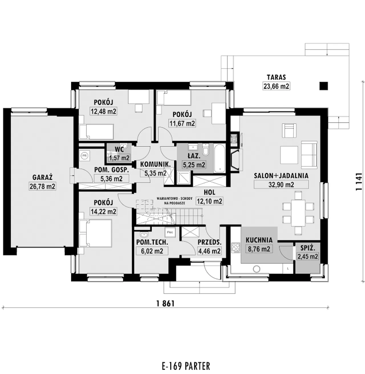 3. Salon + jadalnia | 32,90 m² |