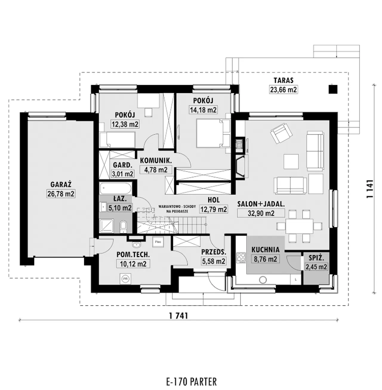Wypełnij formularz i otrzymaj rysunki w pdf z dokładnymi wymiarami budynku i pomieszczeń (długość, szerokość, wysokość) dla projektu E-170