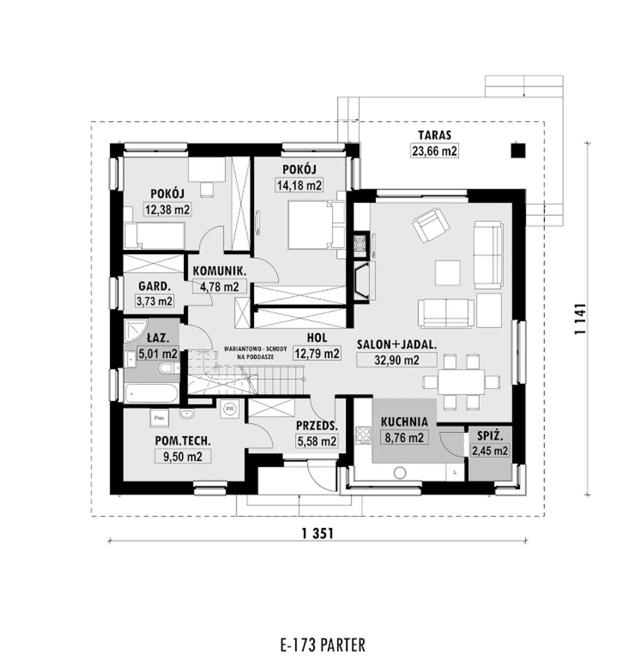 Wypełnij formularz i otrzymaj rysunki w pdf z dokładnymi wymiarami budynku i pomieszczeń (długość, szerokość, wysokość) dla projektu E-173