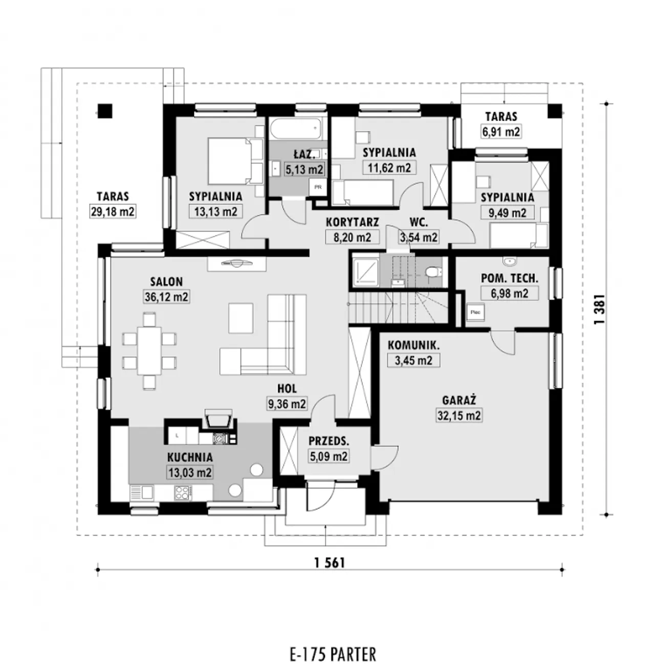 Wypełnij formularz i otrzymaj rysunki w pdf z dokładnymi wymiarami budynku i pomieszczeń (długość, szerokość, wysokość) dla projektu E-174
