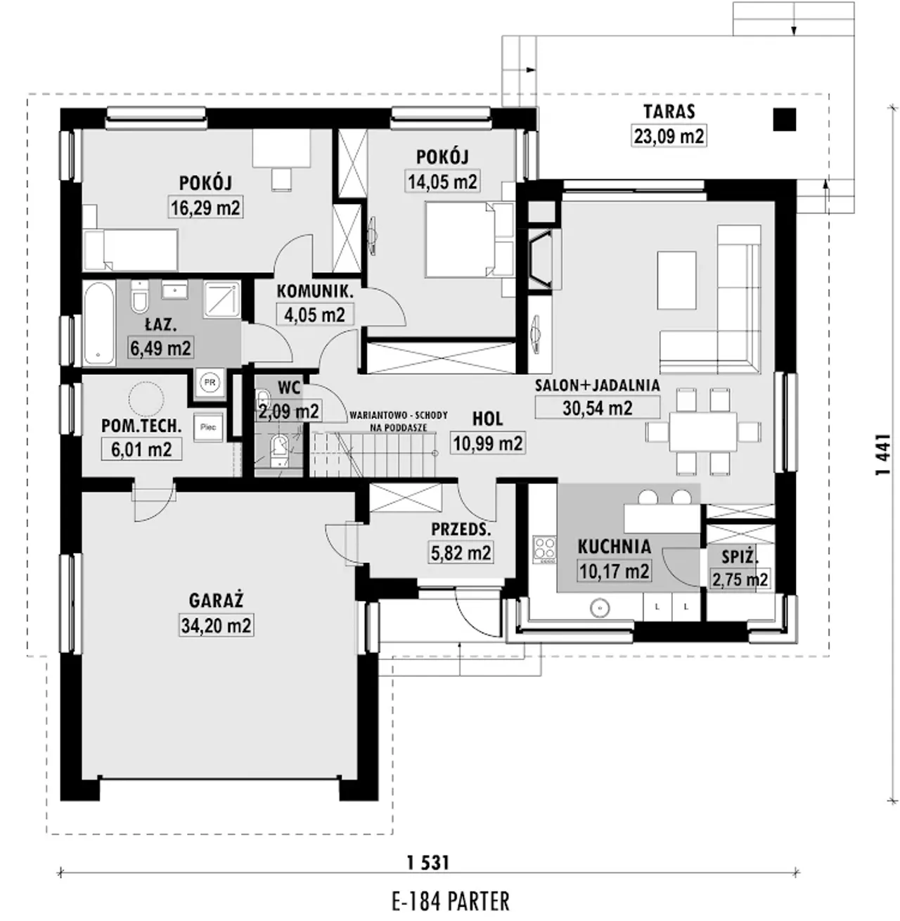 Wypełnij formularz i otrzymaj rysunki w pdf z dokładnymi wymiarami budynku i pomieszczeń (długość, szerokość, wysokość) dla projektu E-184
