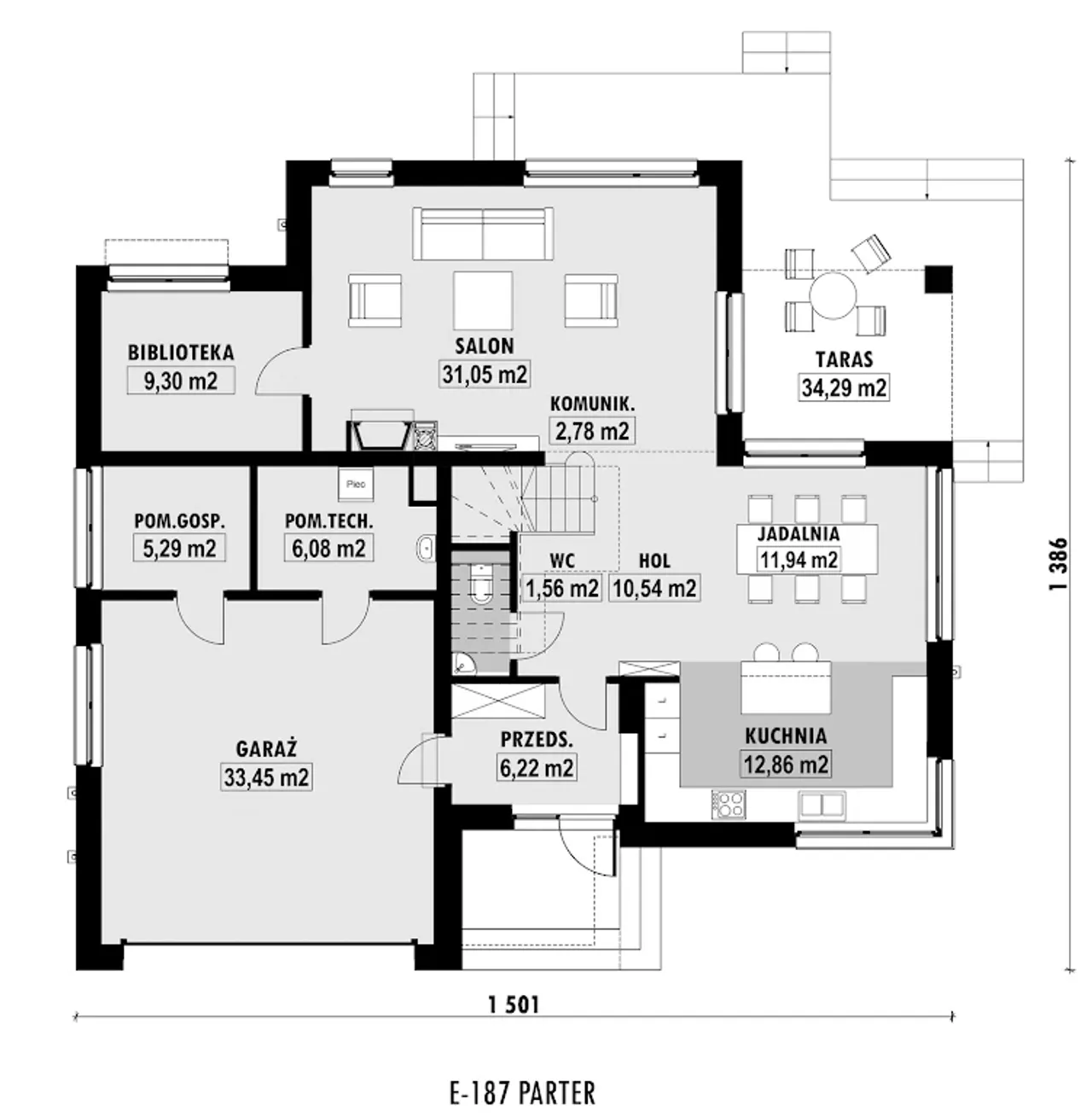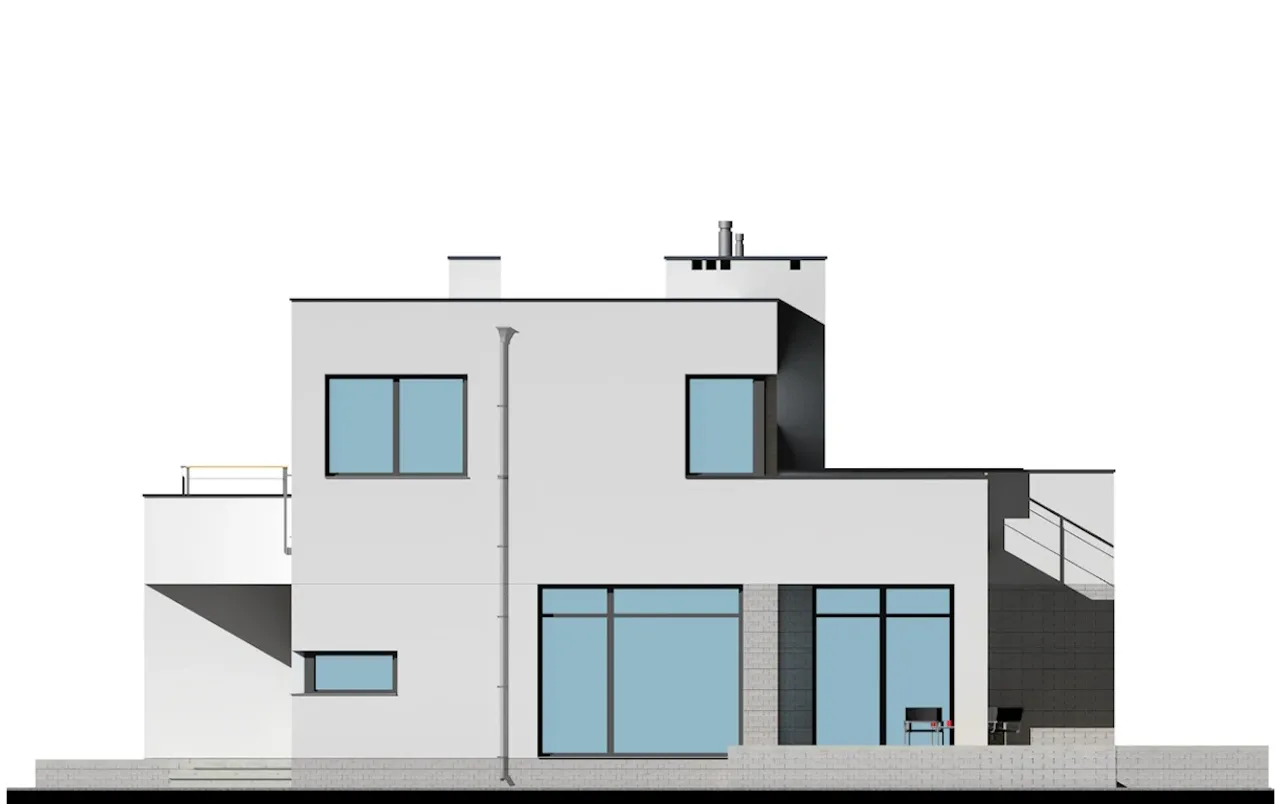 Projekt ten sprawia wrażenie przestronnego, a nowoczesna architektura doda piękna każdej działce. Uwagę zwraca przede wszystkim połączenie strefy dziennej i kuchni, która stanie się sercem domu. Optymalne rozplanowanie pokoi sprawia, że będzie to doskonałe miejsce zarówno dla rodziny, jak i do przyjmowania gości.