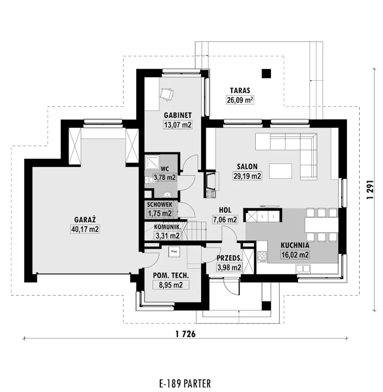 Wypełnij formularz i otrzymaj rysunki w pdf z dokładnymi wymiarami budynku i pomieszczeń (długość, szerokość, wysokość) dla projektu E-189