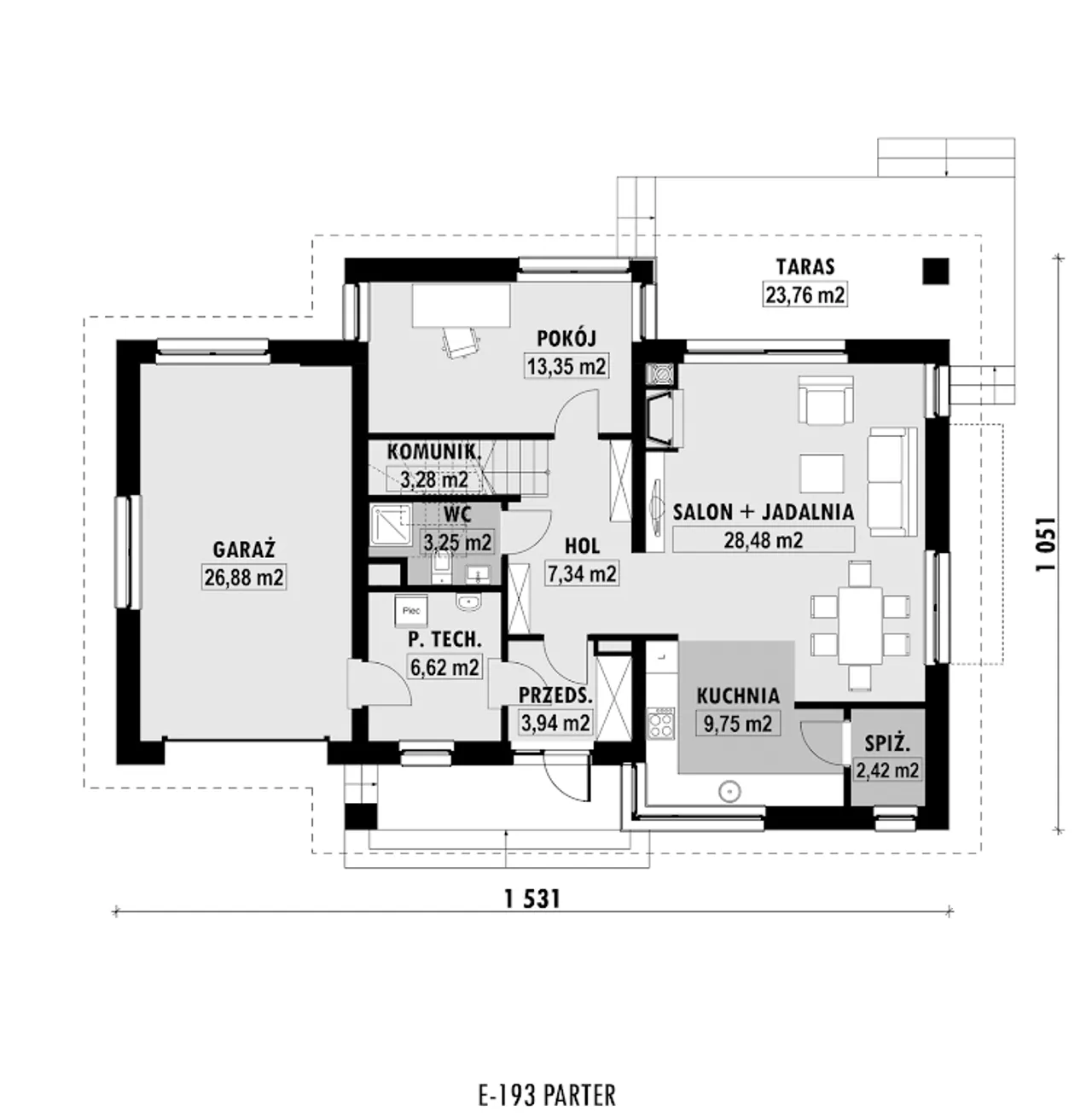 3. Salon + jadalnia | 28,48 m² |