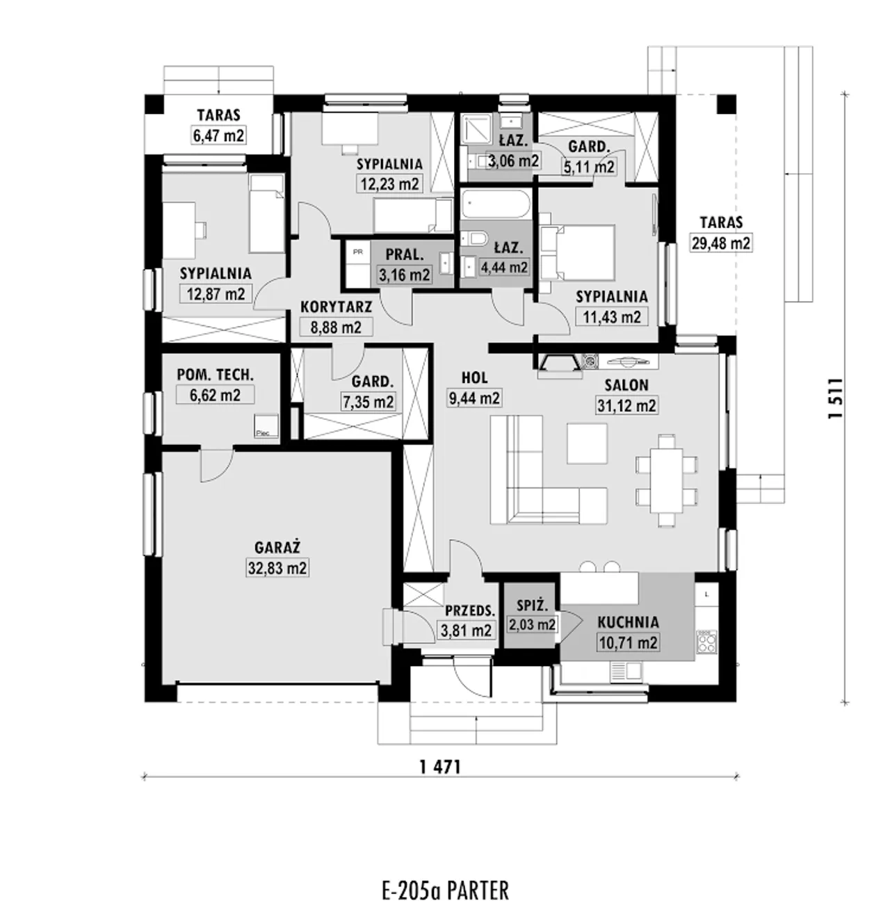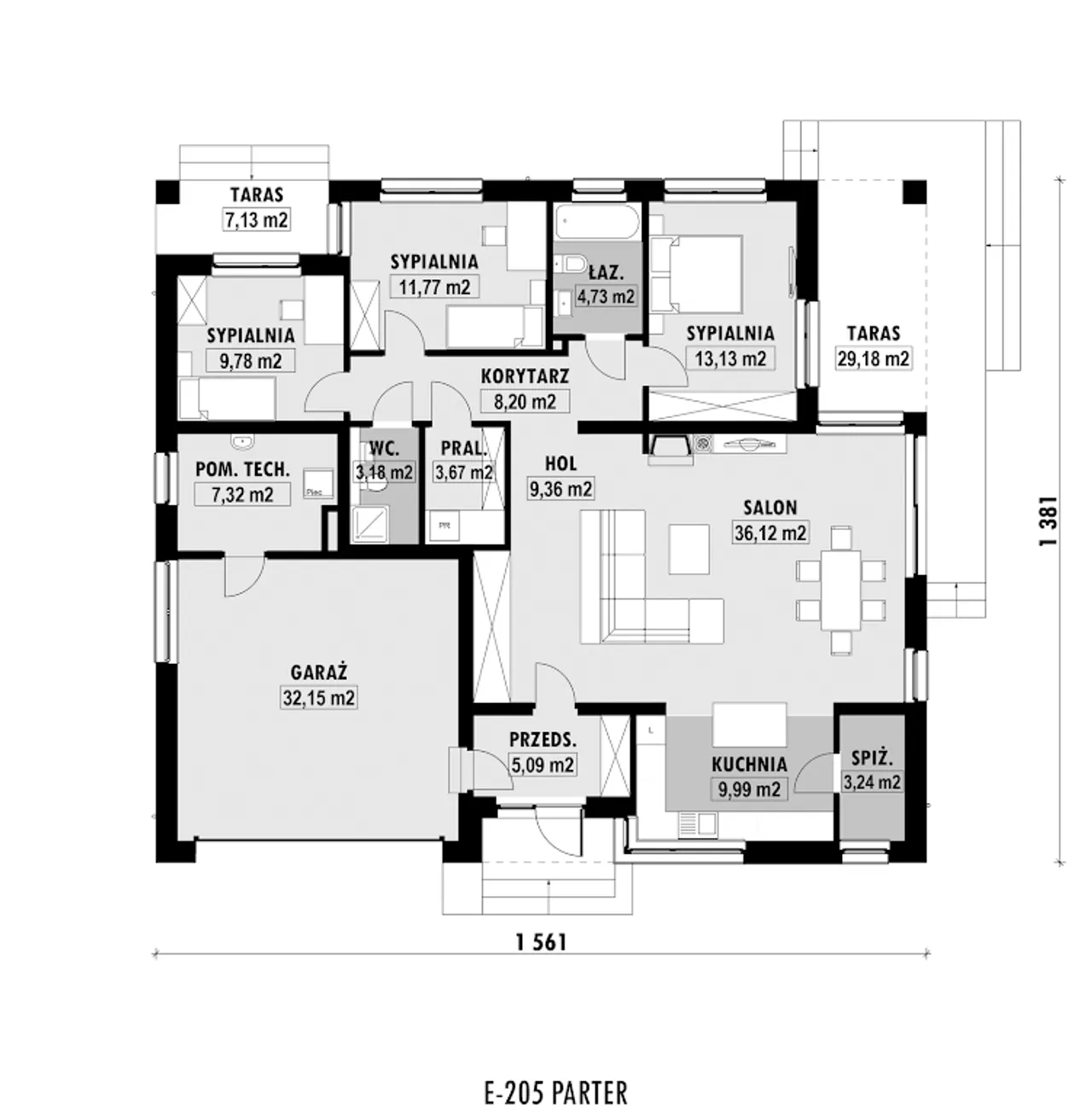 Wypełnij formularz i otrzymaj rysunki w pdf z dokładnymi wymiarami budynku i pomieszczeń (długość, szerokość, wysokość) dla projektu E-205