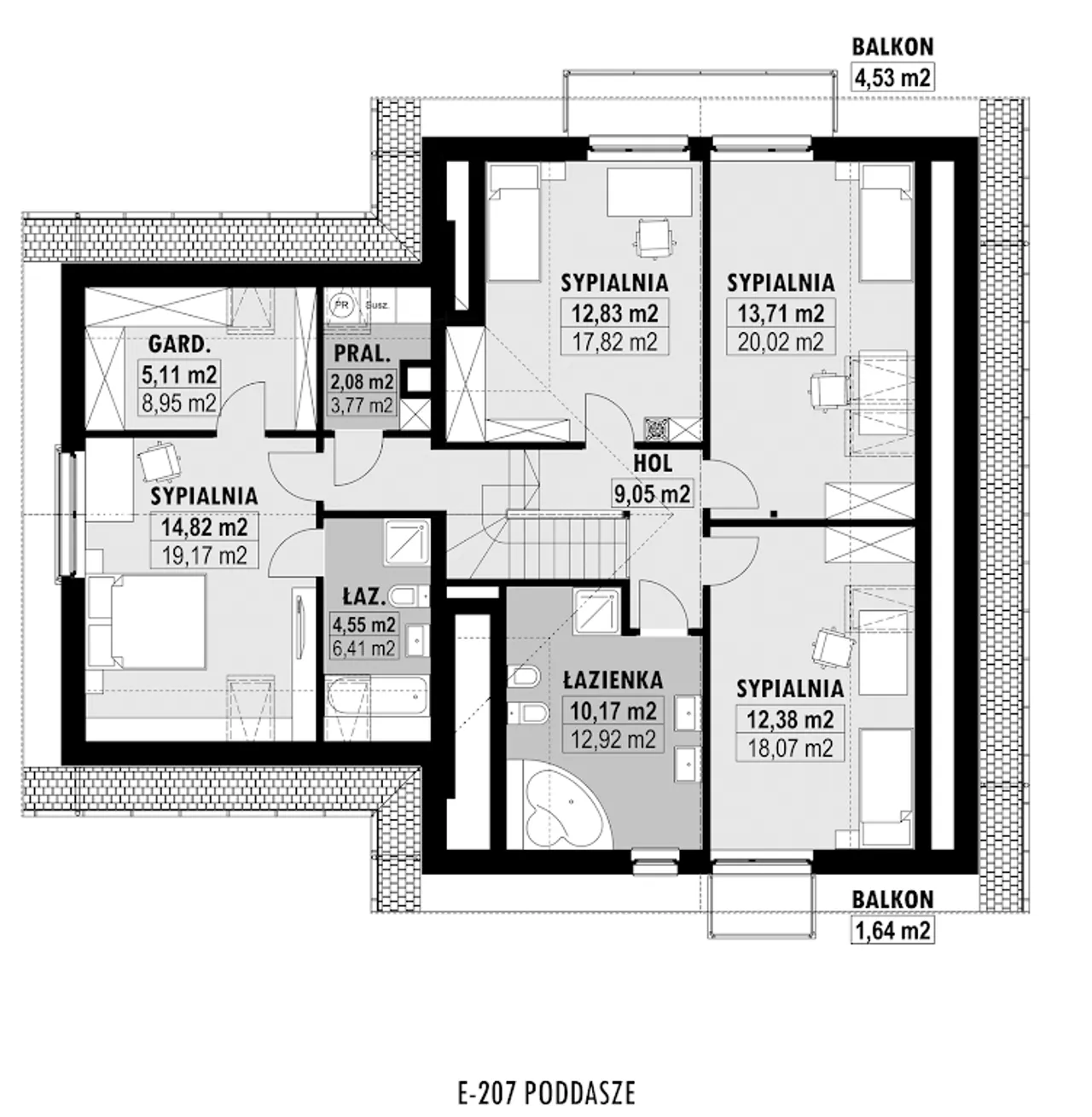 Wypełnij formularz i otrzymaj rysunki w pdf z dokładnymi wymiarami budynku i pomieszczeń (długość, szerokość, wysokość) dla projektu E-207
