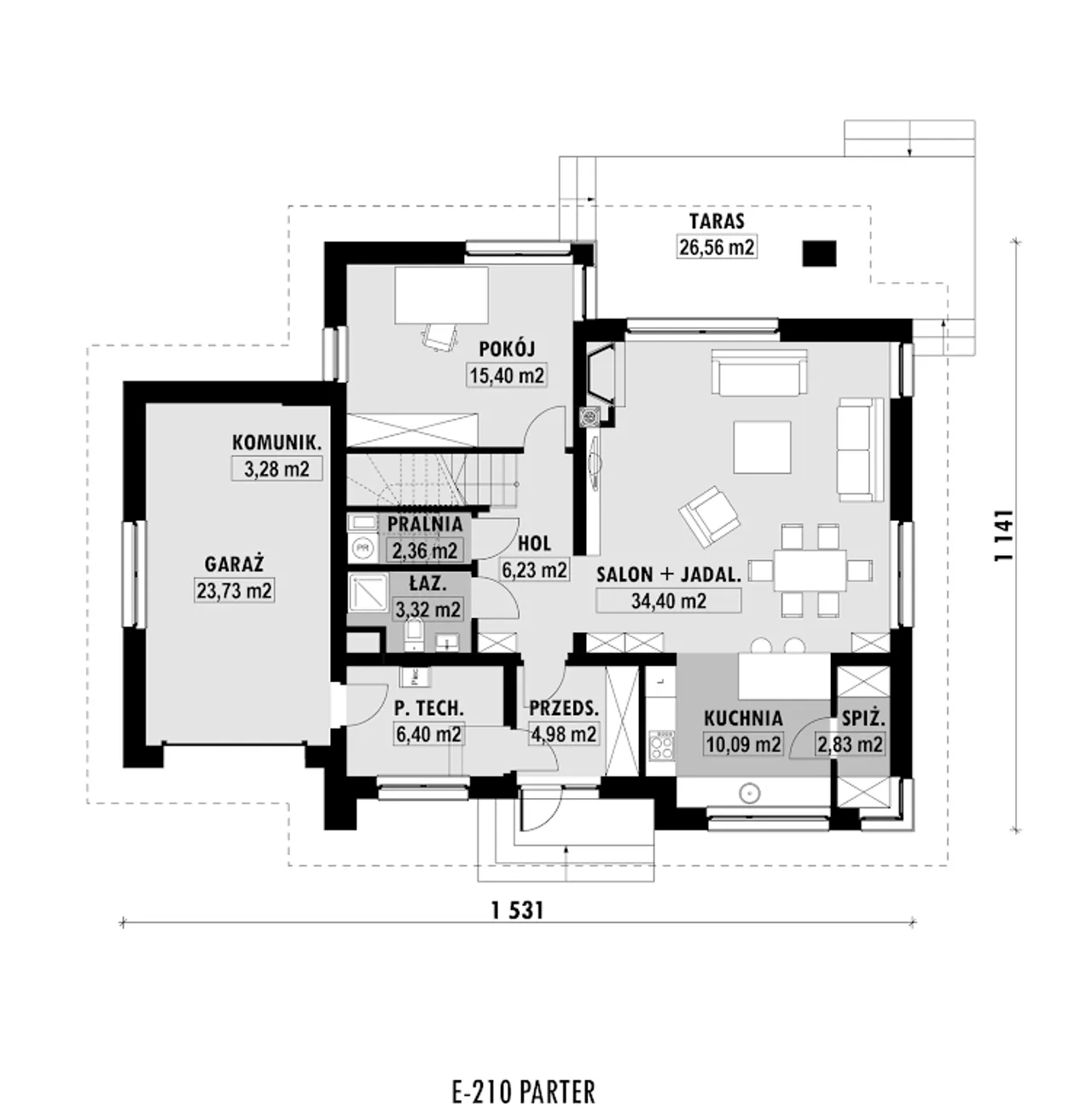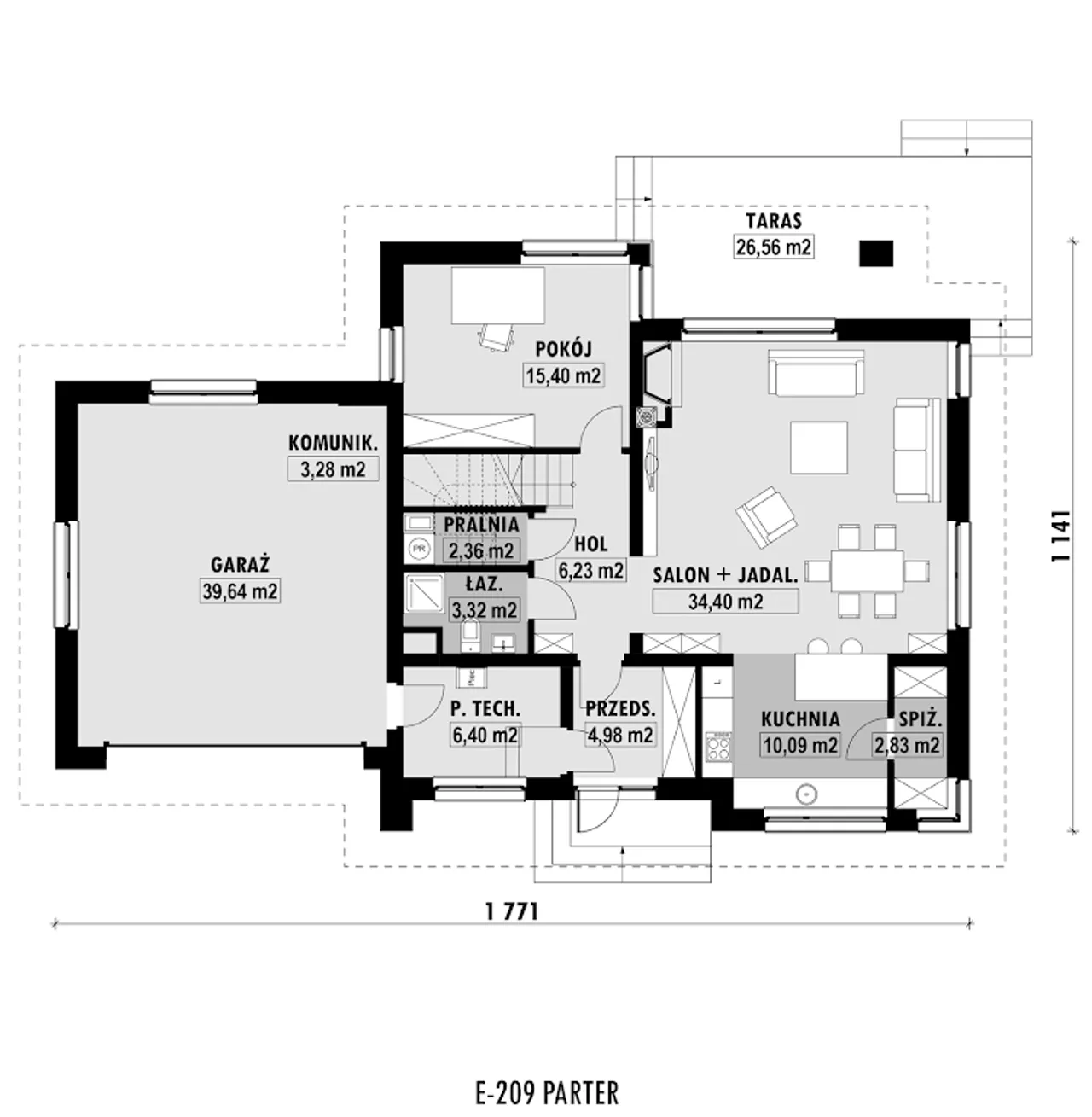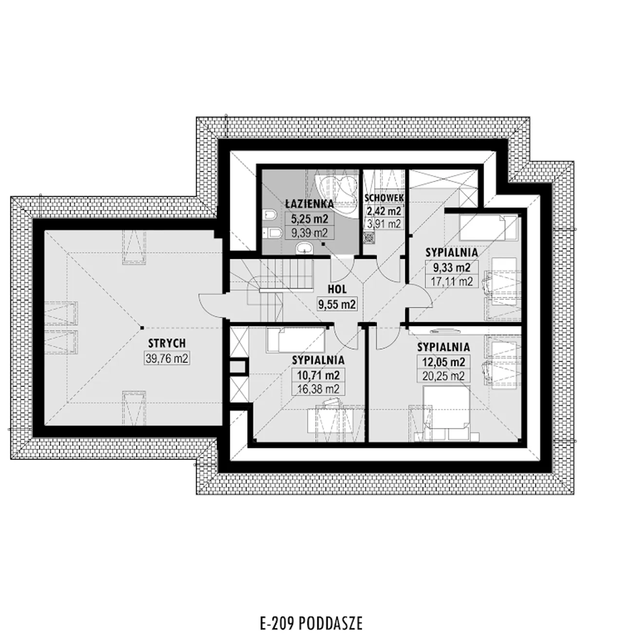 Wypełnij formularz i otrzymaj rysunki w pdf z dokładnymi wymiarami budynku i pomieszczeń (długość, szerokość, wysokość) dla projektu E-209
