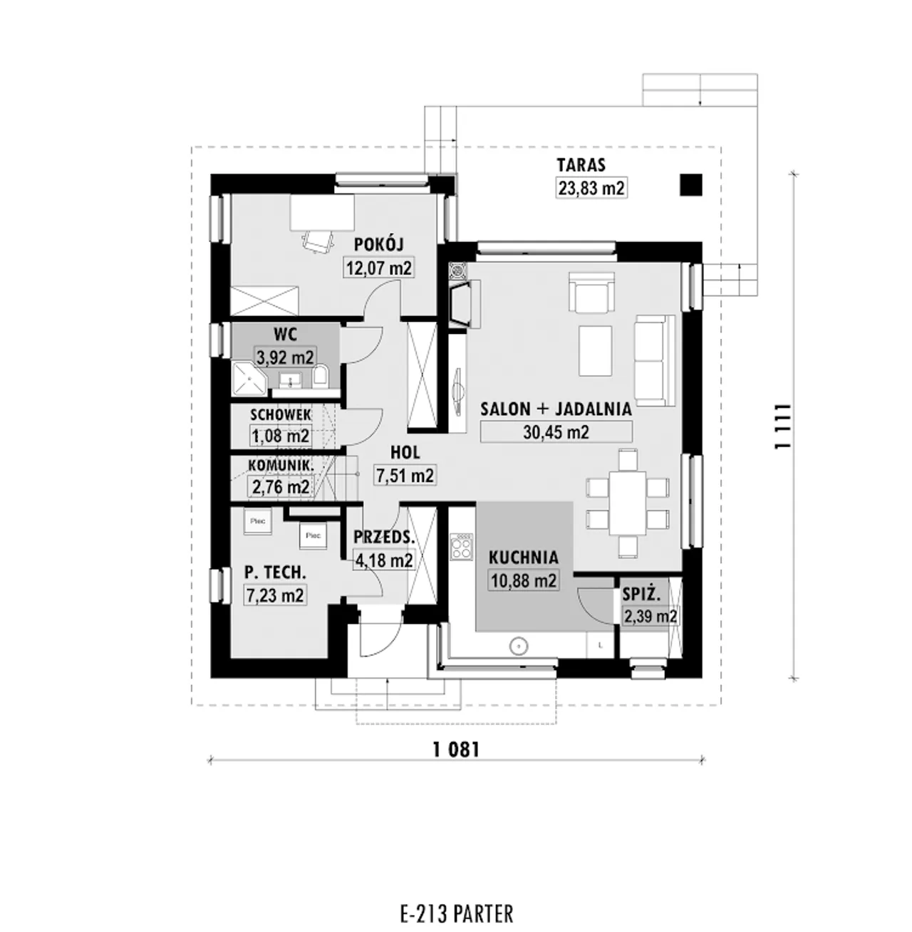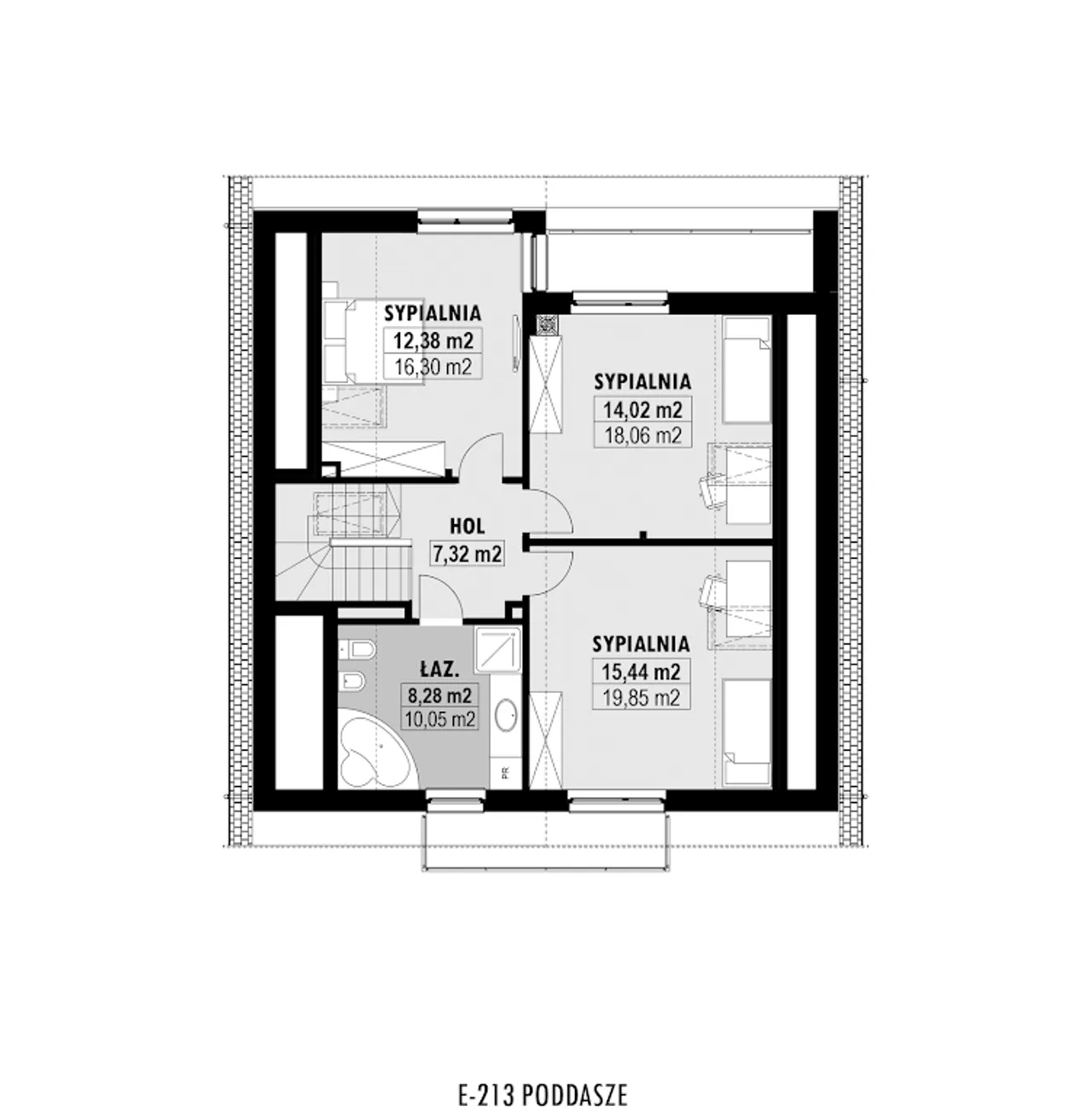 Wypełnij formularz i otrzymaj rysunki w pdf z dokładnymi wymiarami budynku i pomieszczeń (długość, szerokość, wysokość) dla projektu E-213