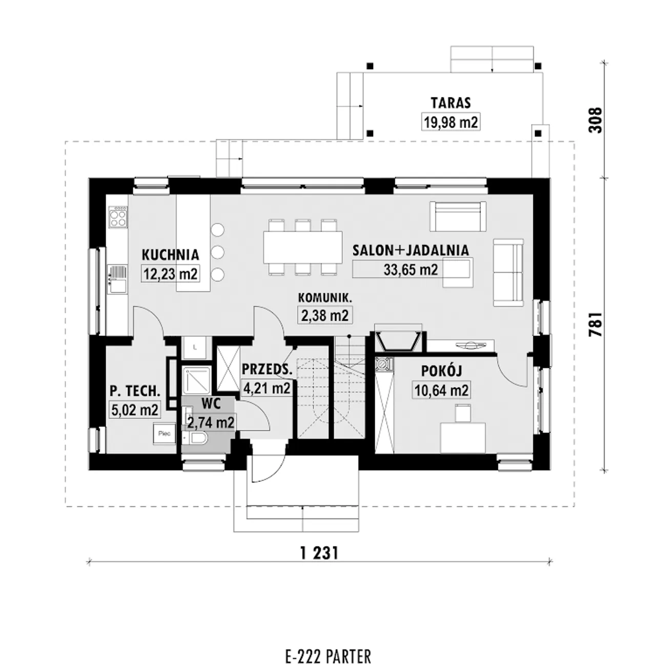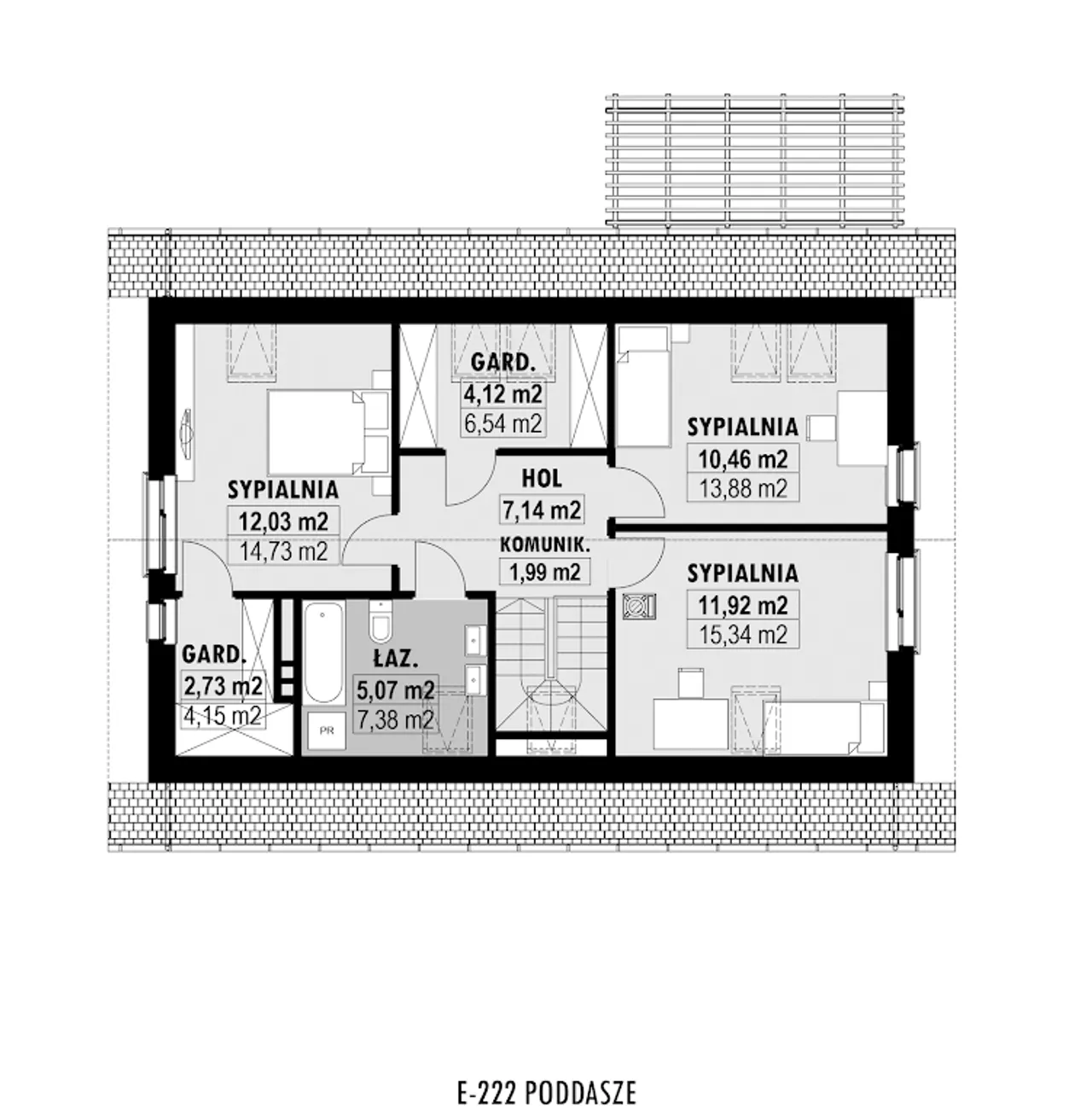 Wypełnij formularz i otrzymaj rysunki w pdf z dokładnymi wymiarami budynku i pomieszczeń (długość, szerokość, wysokość) dla projektu E-222