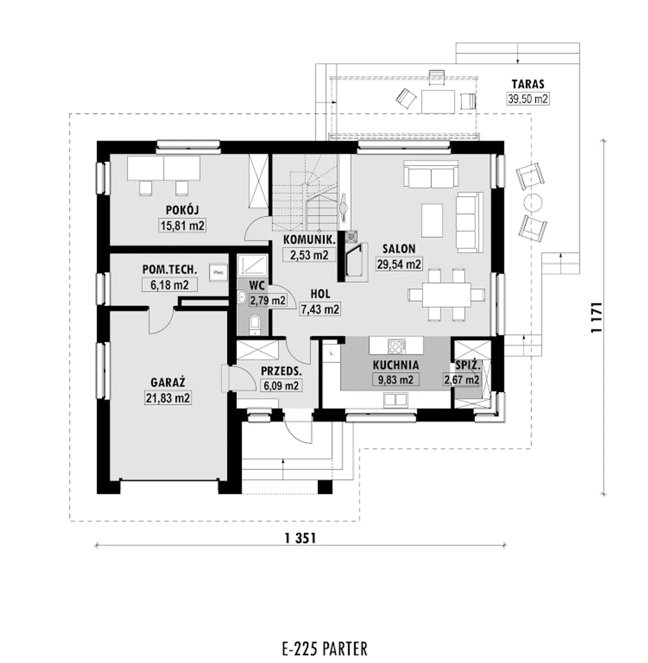 Wypełnij formularz i otrzymaj rysunki w pdf z dokładnymi wymiarami budynku i pomieszczeń (długość, szerokość, wysokość) dla projektu E-225