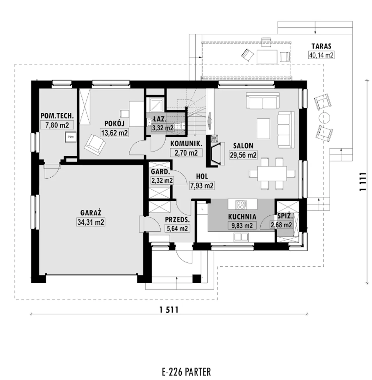 Wypełnij formularz i otrzymaj rysunki w pdf z dokładnymi wymiarami budynku i pomieszczeń (długość, szerokość, wysokość) dla projektu E-226