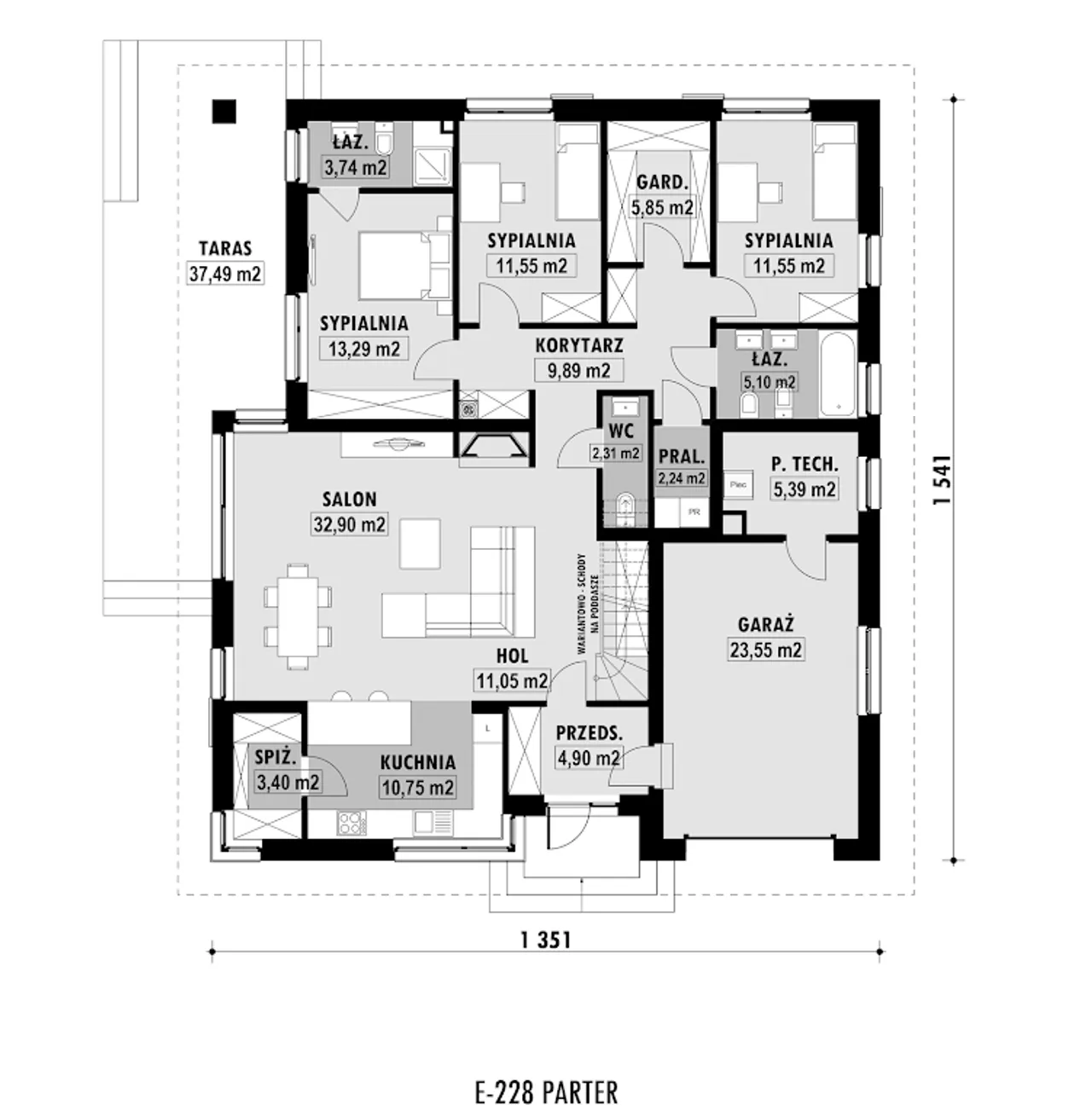 Wypełnij formularz i otrzymaj rysunki w pdf z dokładnymi wymiarami budynku i pomieszczeń (długość, szerokość, wysokość) dla projektu E-228