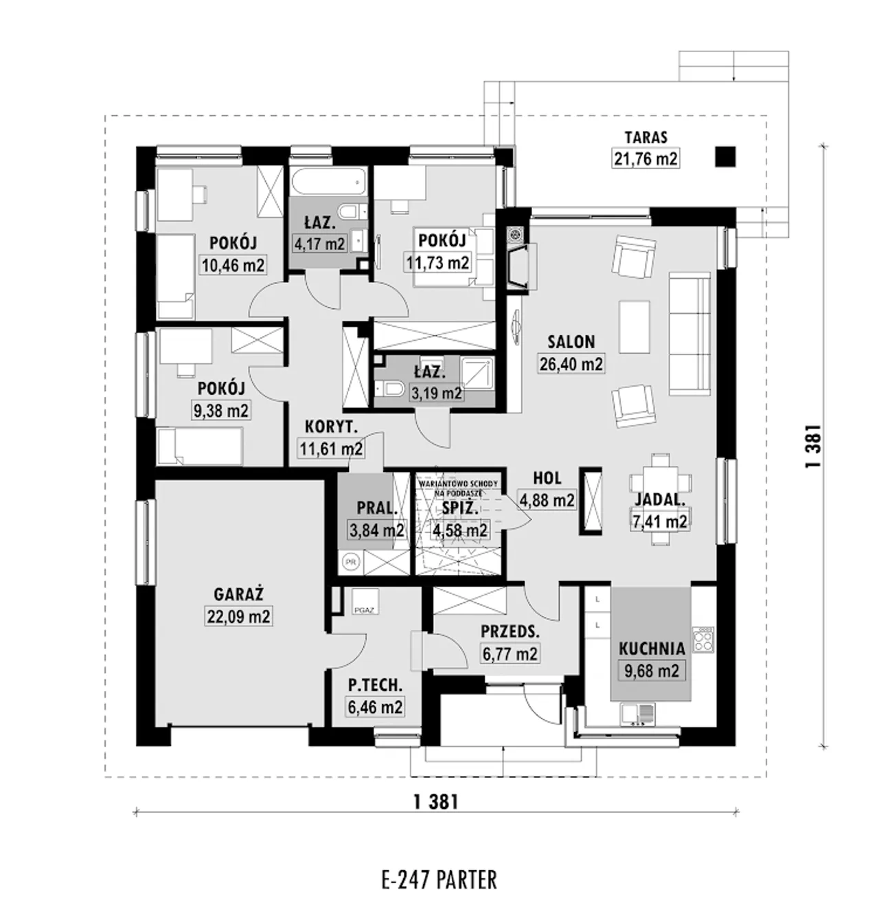 Wypełnij formularz i otrzymaj rysunki w pdf z dokładnymi wymiarami budynku i pomieszczeń (długość, szerokość, wysokość) dla projektu E-247