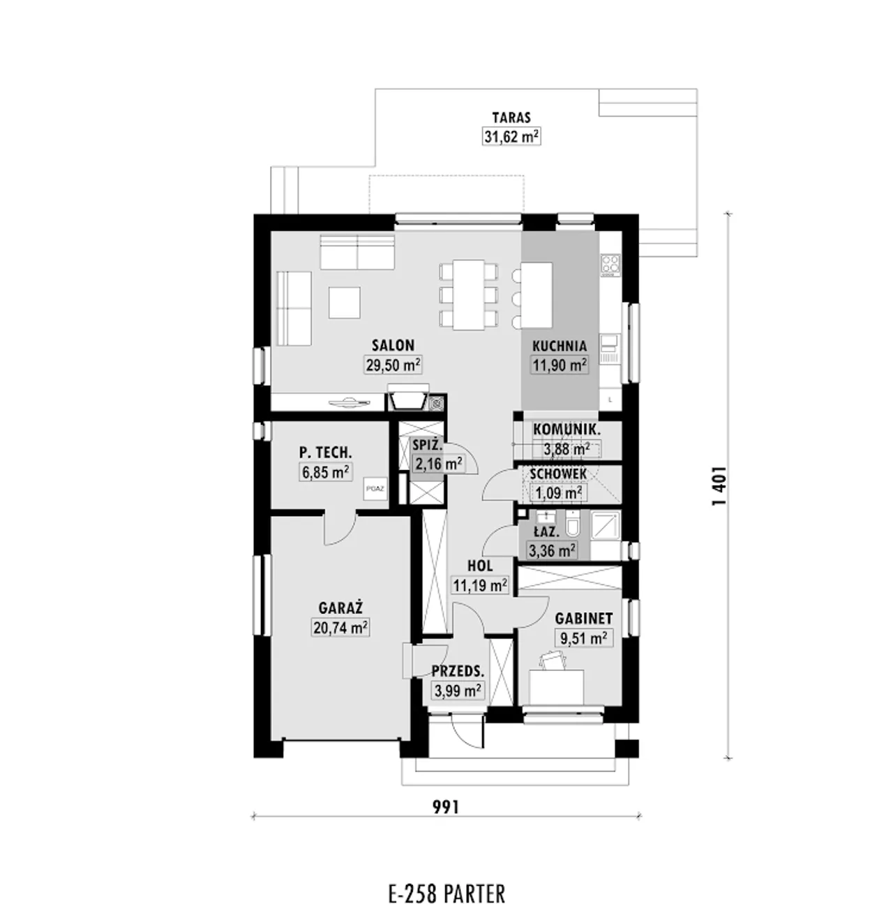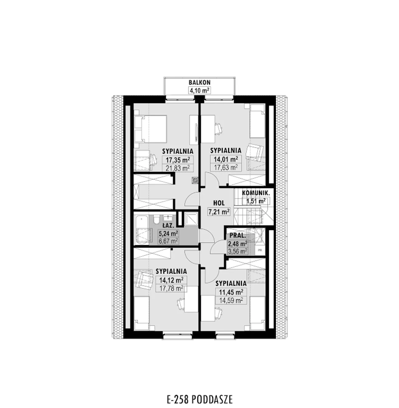 Wypełnij formularz i otrzymaj rysunki w pdf z dokładnymi wymiarami budynku i pomieszczeń (długość, szerokość, wysokość) dla projektu E-258