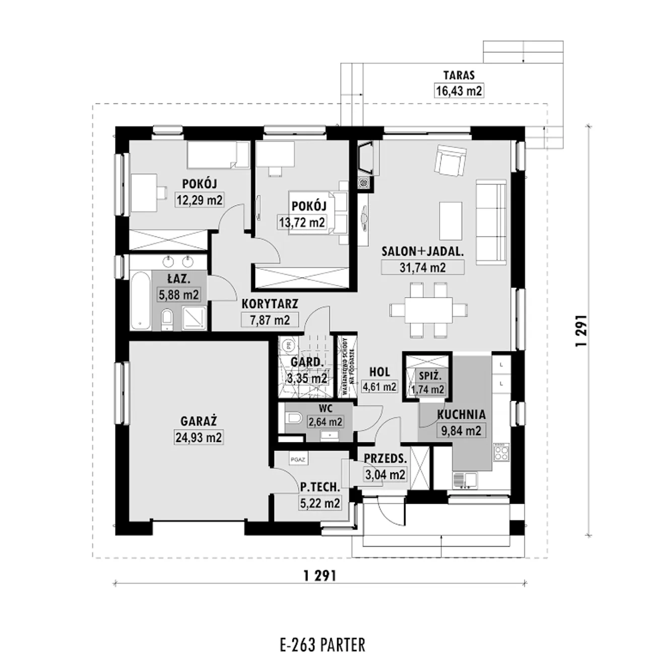 Wypełnij formularz i otrzymaj rysunki w pdf z dokładnymi wymiarami budynku i pomieszczeń (długość, szerokość, wysokość) dla projektu E-263