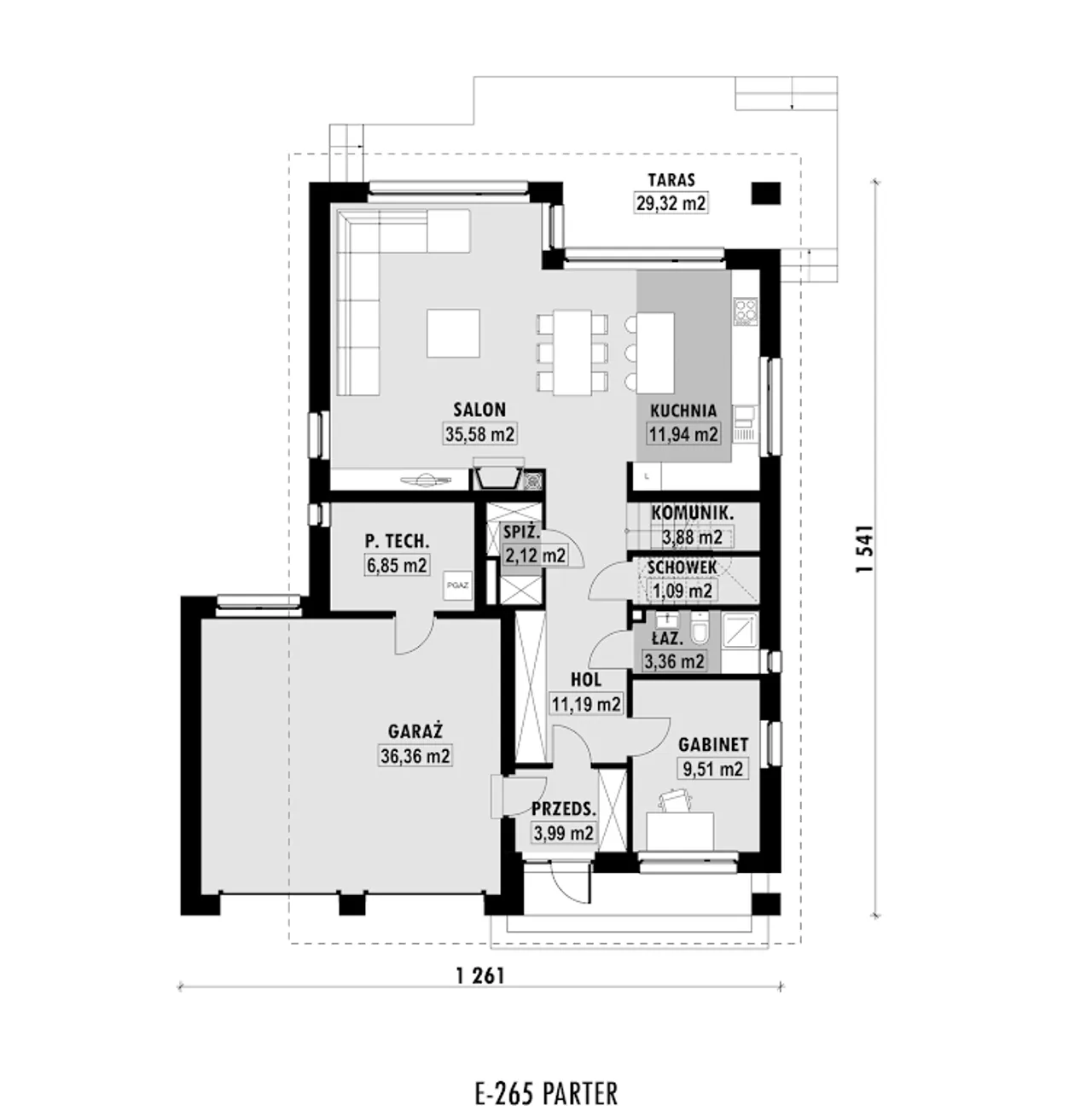 Wypełnij formularz i otrzymaj rysunki w pdf z dokładnymi wymiarami budynku i pomieszczeń (długość, szerokość, wysokość) dla projektu E-265